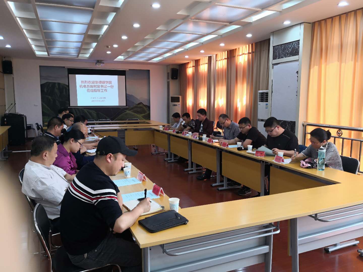 2018年5月8日下午,景德镇学院机械与电子工程系陈树发书记一行莅临565net必赢客户端机电学院进行参观交流。机电学院院长苏啸、书记王斌、副院长田华、副书记王立平携教研室主任、实训中心负责人热情接待,并于会议室开展交流座谈会。