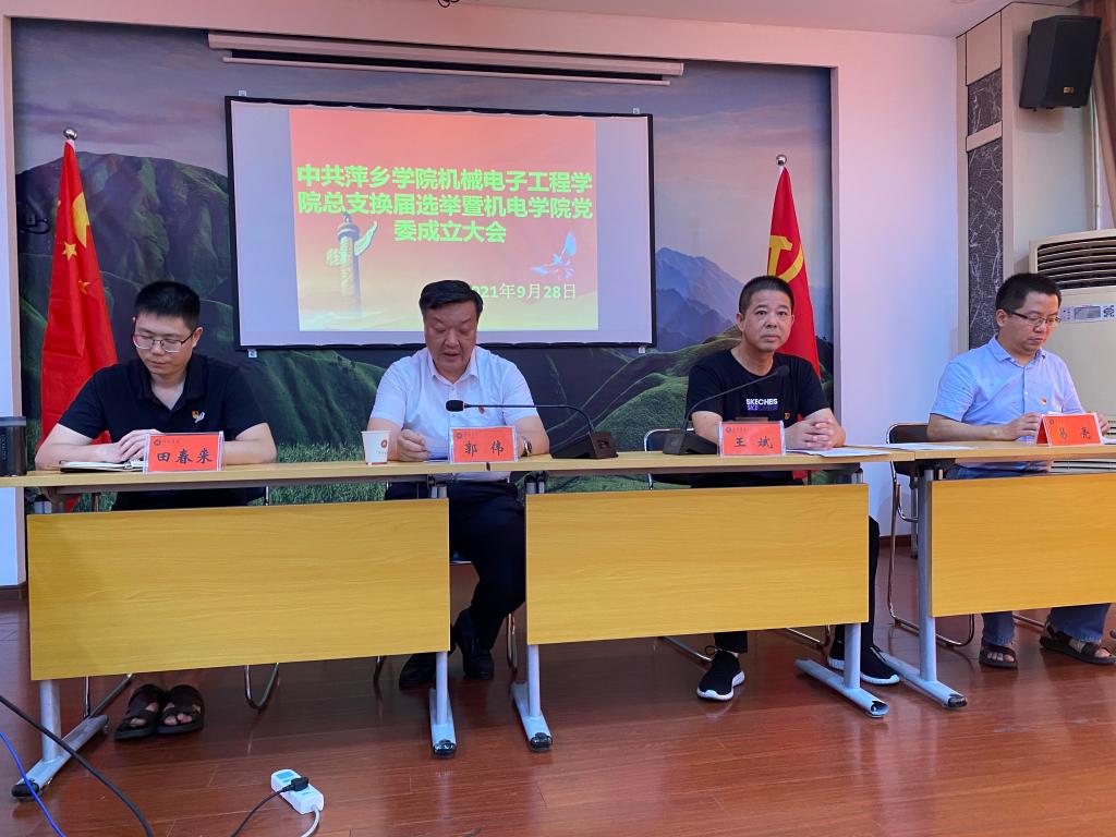 经学校党委批准,机械电子工程学院党总支换届选举暨机电学院党委成立大会于9月28日下午在2200会议室顺利召开。校党委委员、副校长郭伟同志、组织部副部长易亮同志出席大会并监督指导整个大会选举过程。会议由机电学院党总支书记王斌同志主持,学院全体正式党员参加了会议。