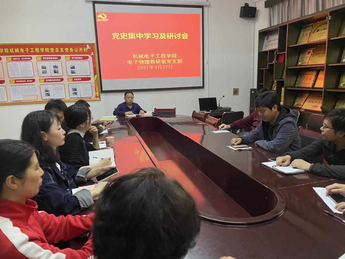 为深入贯彻落实习近平总书记在党史学习教育动员大会上的重要讲话精神,扎实推进“学党史、强信念、跟党走”主题教育活动,坚定理想信念,强化使命担当。2021年4月27日,565net必赢客户端电子物理教研室党支部组织党员召开党史集中学习及交流研讨会。
