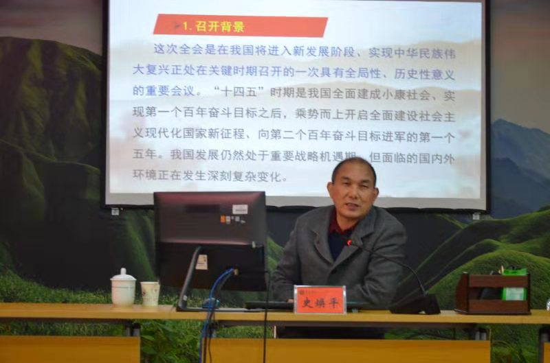 史焕平指出,学习宣传贯彻党的十九届五中全会精神是学校当前和今后一段时期重要的政治任务,要切实把广大师生的思想和行动统一到以习近平同志为核心的党中央决策部署上来,为学校的教育事业作出自己的贡献。