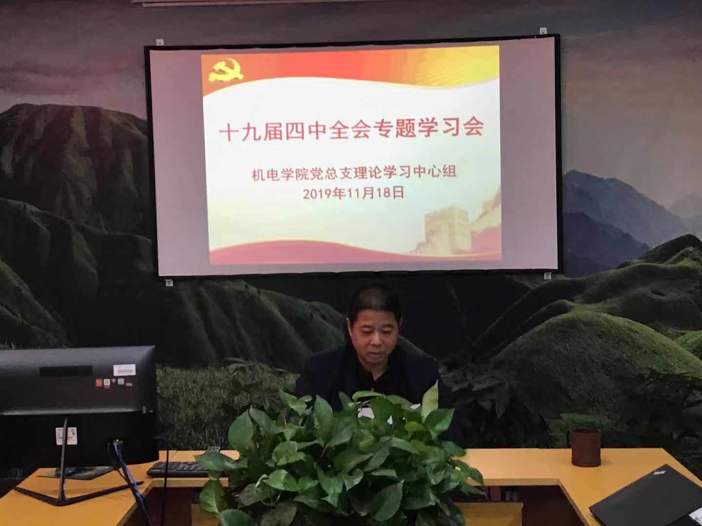 2019年11月18日,机械电子工程学院理论学习中心组召开专题会议,学习十九届四中全会精神。学院党总支书记王斌主持会议,学院理论中心组成员参加。