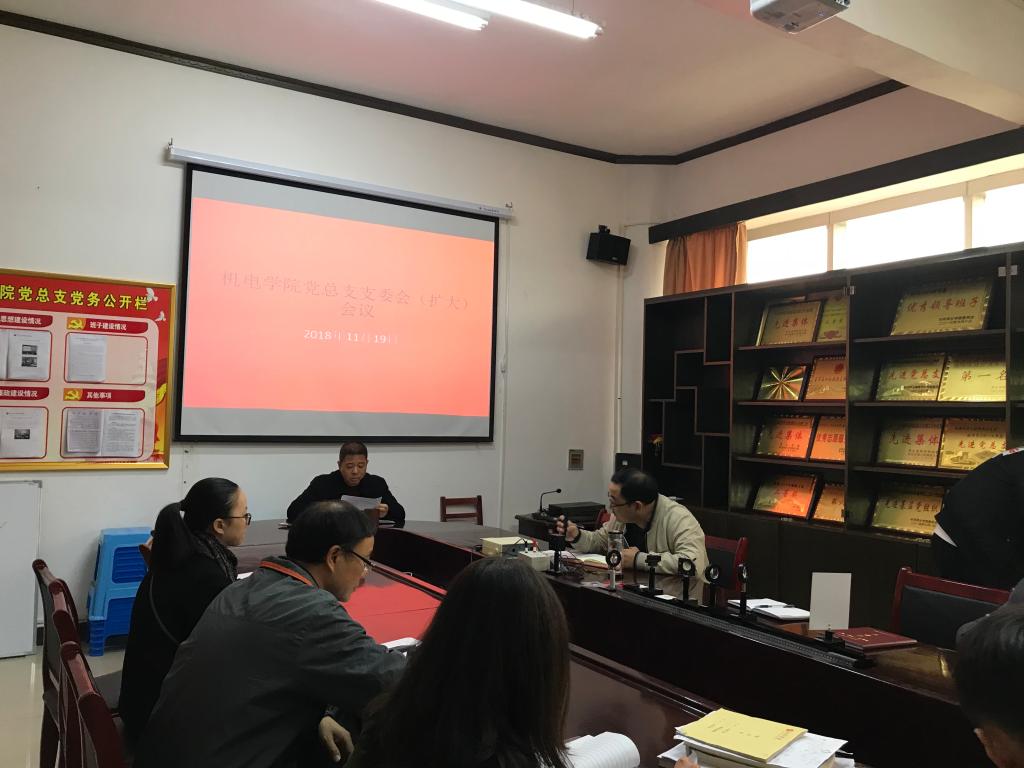 11月19日下午,机械电子工程学院党总支在党员活动室召开了总支扩大会议。学院党总支书记王斌、副书记王立平、2个教工支部、学生支部书记及支委成员参加了此次会议。