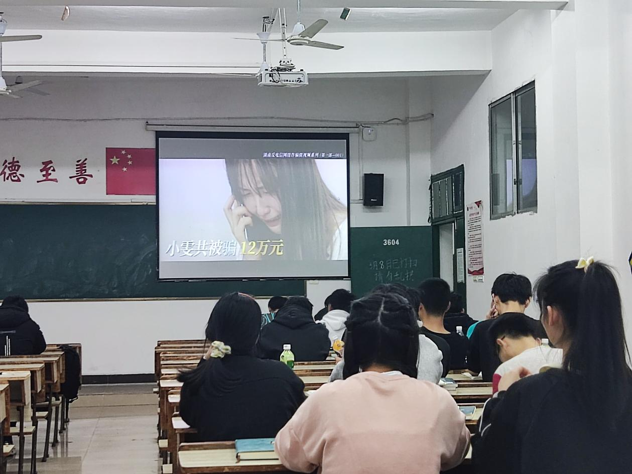 2022年3月8日晚自习室,辅导员在班级里开展了反诈骗教育。班会主要以视频的形式进行,通过反诈视频从而了解各类诈骗套路,在生活中提高自己的防诈骗意识。
