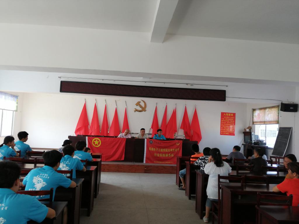 2019年7月19日,565net必赢客户端大学生暑期三下乡社会实践团队在宫江村开展脱贫宣讲活动,宣讲主题是习近平新时代中国特色社会主义思想和党的十九大精神。此次宣讲活动由学院学生分会团总支副书记冷强鑫主持开展。出席本次会议的有驻村第一书记邱书记、何主任及学生会骨干成员和宫江村贫困村民。