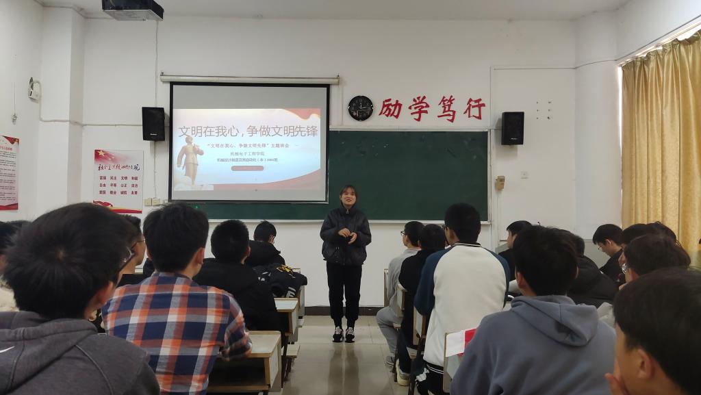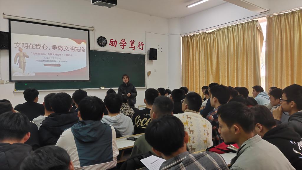 2021年12月17日,为响应学校“文明在我心,争做文明先锋”主题活动的号召,机械设计制造及其自动化2001班于鼎新楼举办了相应主题班会。
