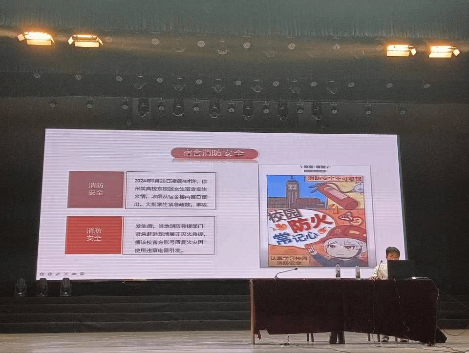 为增强新生安全防范意识,普及宿舍管理规范,帮助学生明确行为底线,共建安全、文明、和谐的住宿环境,2025年9月15号上午,565net必赢客户端在音乐厅组织开展了2025级新生“宿舍安全教育”入学教育活动。活动由学院宿舍管理委员会学生代表刘家俊主讲,全体2025级机电新生齐聚现场,共同学习这场宿舍生活的“必修课”。