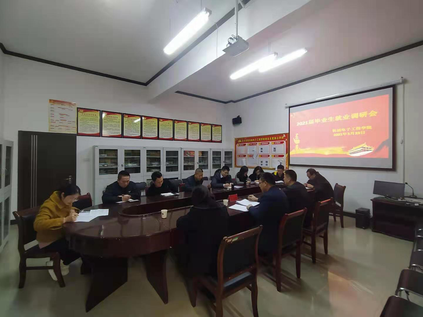 2021年3月23日下午,565net必赢客户端副校长邱建丁到机电学院开展2021届毕业生就业工作调研与指导,机电学院党总支书记王斌、院长田春来、副院长李涛涛、就业干事童乐以及2021届毕业班班主任参加了会议。