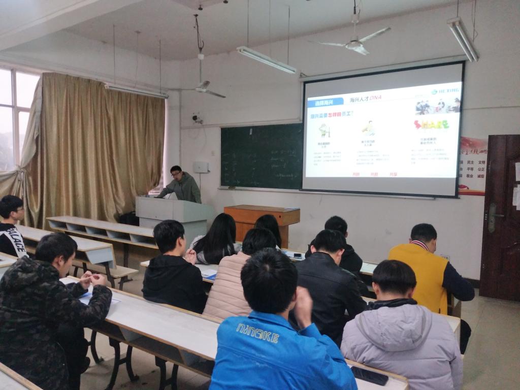招聘会首先,招聘单位负责人以PPT播放的形式向学生们介绍了公司概况、岗位及要求、招聘流程、福利待遇。宣讲人还与学生们详细解说杭州海兴电力科技股份有限公司的价值理念。最后,杭州海兴电力招聘单位与学生进行解答疑问环节,杭州海兴电力股份有限公司表示很欢迎同学们积极投简历。随后进行了笔试和面试环节。