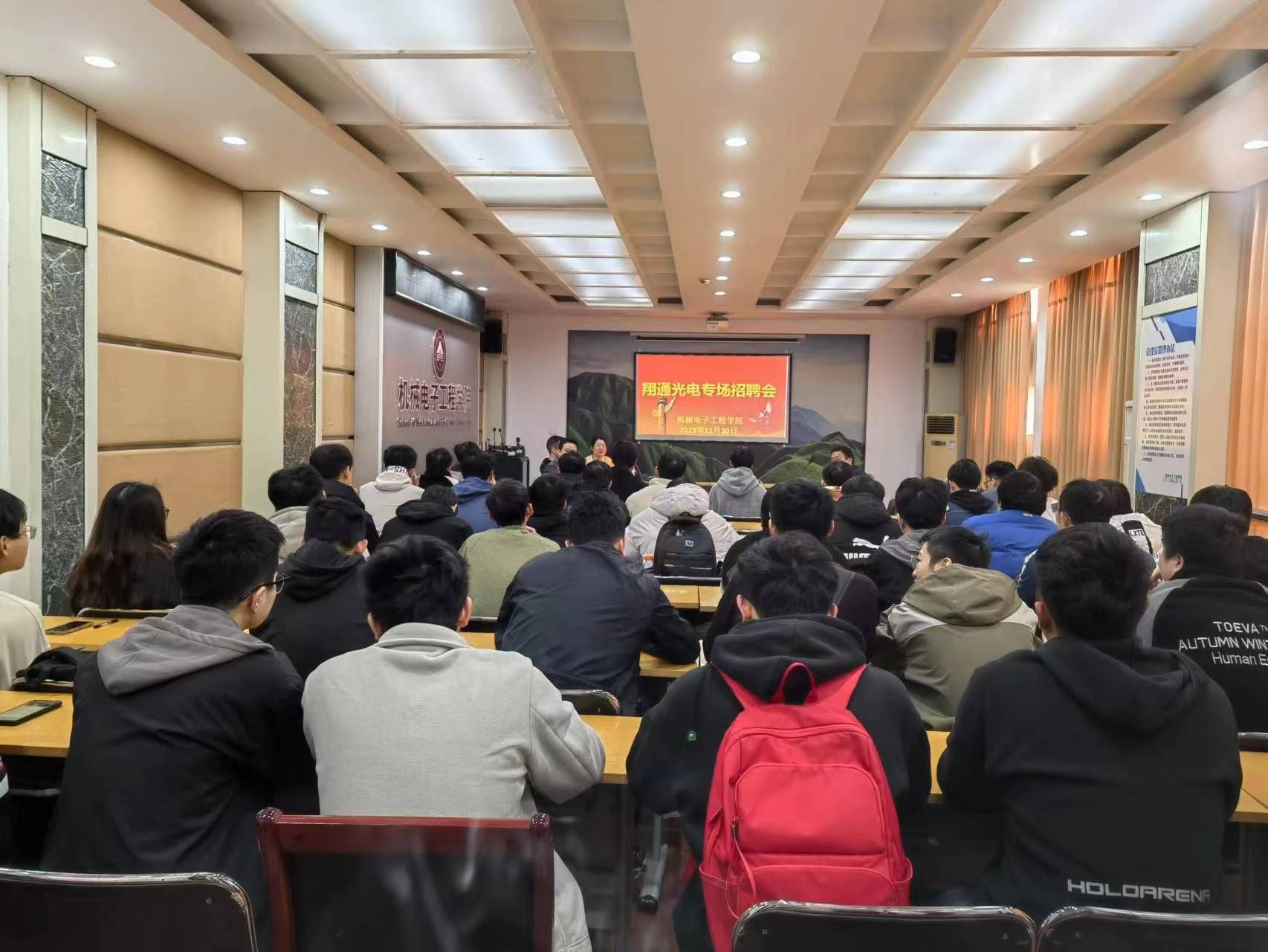2023年11月30日,中航翔通光电技术有限公司人事行政部部长农艺艳携光无源组件经理贾绍睿、工程部产品经理郭琪一行来到565net必赢客户端565net必赢客户端,为2024届毕业生举行现场招聘宣讲会。这是中航翔通光电技术有限公司首次来到565net必赢客户端进行毕业生专场招聘。招聘宣讲会现场异常火爆,机电学院的毕业生积极前往参与。
