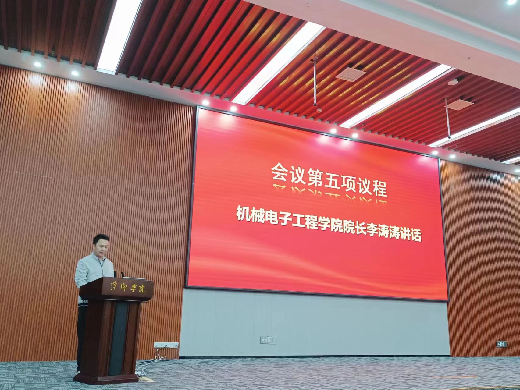 最后,校党委委员、副校长陈永国发言。他首先肯定了机电学院近年来在学生科技创新竞赛方面取得的成绩与进步,鼓励学院要解放思想,积极创造条件,努力形成学院班子、各教研室、各团队齐抓共管的学生科技创新和科研学术活动氛围。同时他对学生们也提出了殷切期盼,他鼓励大家敢于去做,善于去做,顺应社会发展和时代进步,谋划远大而坚定的人生事业,与新时代同向同行,在盛世中肩负重任,在奋斗中开创属于自己的精彩人生。