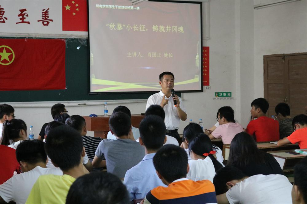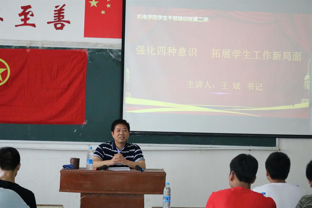 为进一步提高学生干部队伍的整体素质,充分发挥学生干部的模范带头作用、榜样示范作用、桥梁纽带作用及得力助手作用,机电学院于6月14日下午在鼎新楼2313举办了学生干部培训班,学工处处长肖国正,机电学院党总支书记王斌分别作了讲座。辅导员杨芳及所有学生干部参加了此次活动。