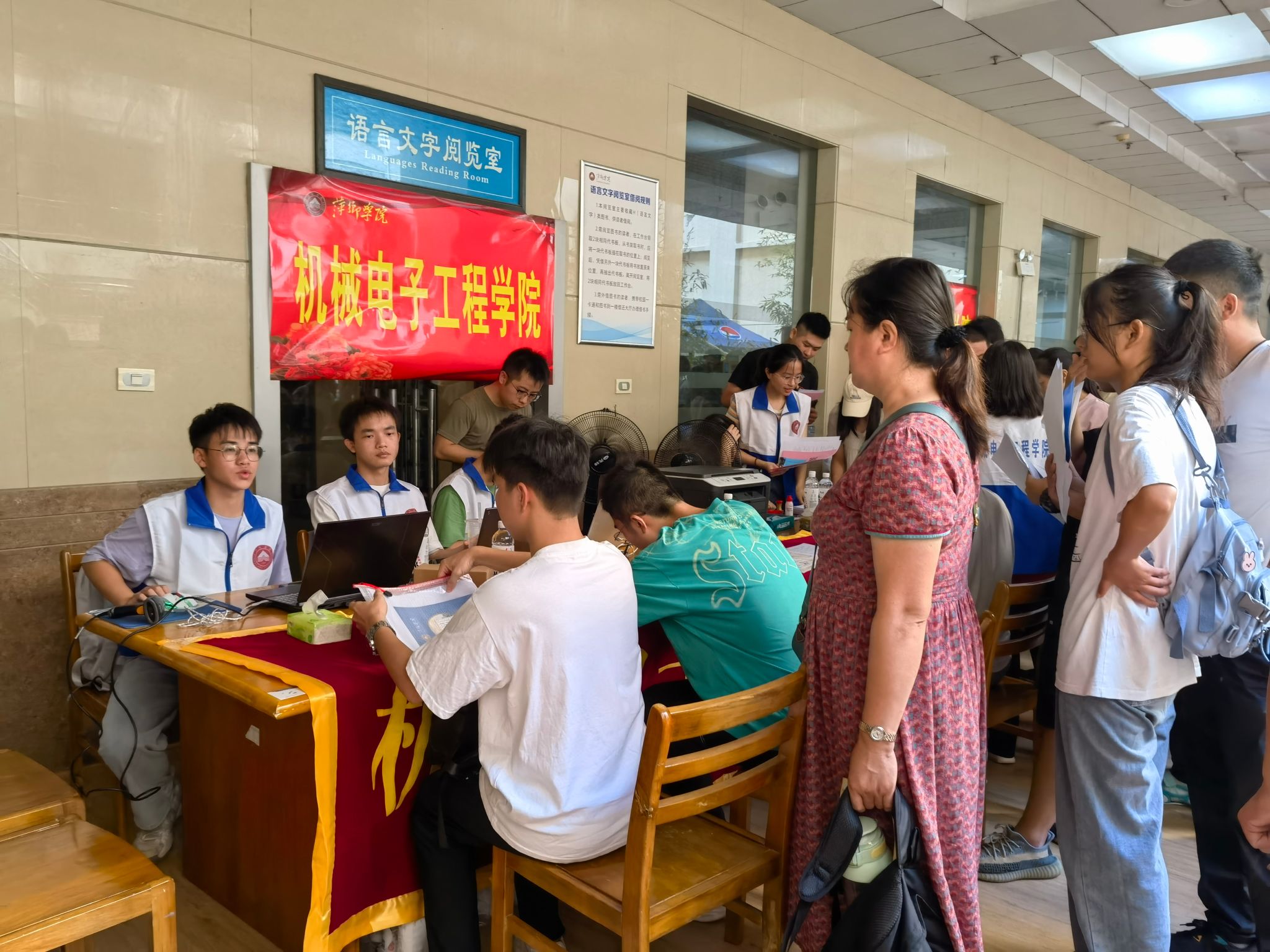 为做好2023年秋季新生入学报到工作,机械电子工程学院高度重视,对各项工作提前进行了周密部署。9月9日上午,学院党委书记王斌、院长李涛涛一行来到南图书馆迎新点现场指导工作,看望前来报到的新生和辛勤付出的工作人员、志愿者,并叮嘱迎新工作人员要坚守岗位,全力做好迎新工作。迎新现场,他们为新生及家长答疑解惑,并寄语新生们:要志存高远,脚踏实地,为建设社会主义现代化强国踔厉奋发,要为实现自己的梦想努力学习,做最美的自己。
