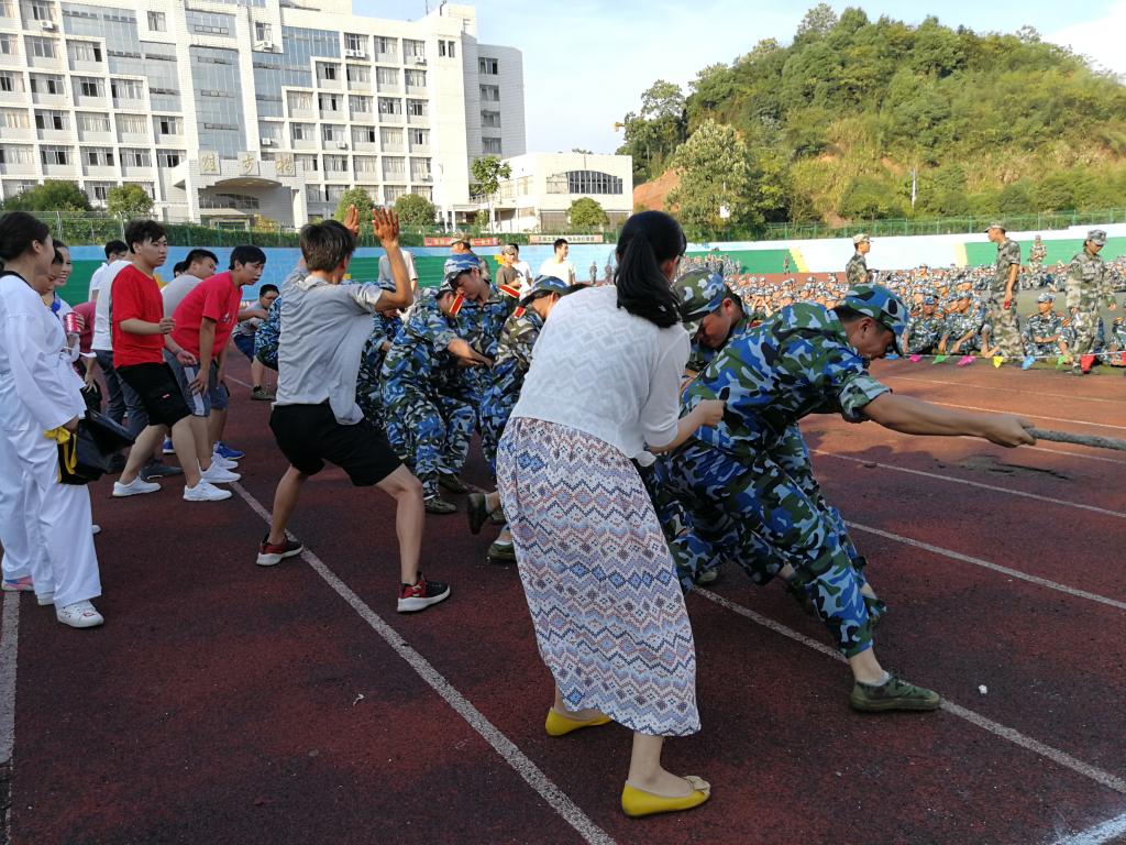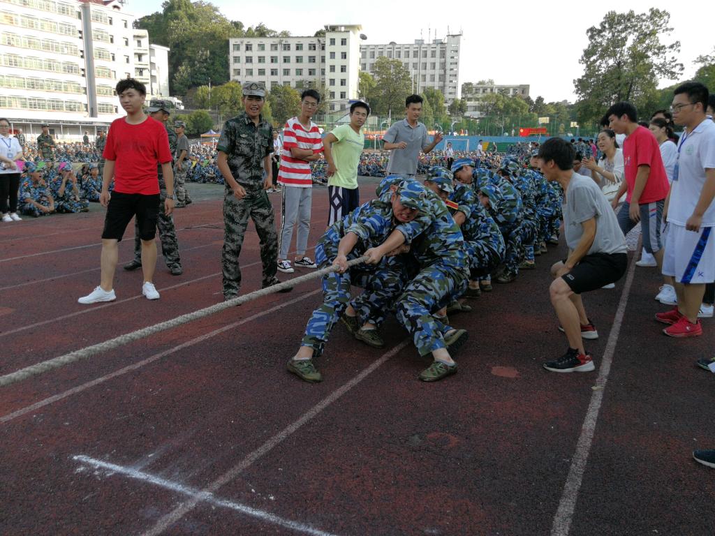 在傍晚举行的拔河比赛中,机电学院新生队员们齐心协力,咬紧牙关,抓紧绳子,激情四射,用力拼搏。场下,拉拉队员在场外摇旗助威、敲鼓呐喊,加油声、呼喊声响彻军营。虽然机电只获得了第四名,但机电学院队员们是好样的,他们展现了顽强拼搏的精神。