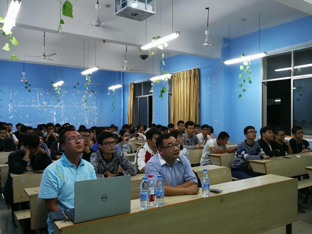 2018年9月28日晚,机电学院于鼎新楼2609教室组织举办江西财经大学考研宣讲会。由江西财经大学软件与物联网工程学院孙建成教授、汪靖博士主讲。机电学院院长苏啸、党总支副书记王立平出席,80余名学生聆听了此次宣讲会。