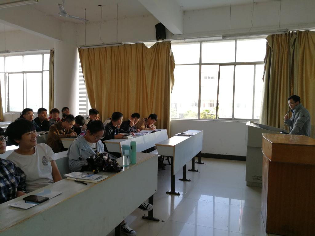 2018年10月11日下午5点,机电学院于2216教室举办南昌工程学院考研宣讲会,由南昌工程学院的物理教研主任刘宇主讲,南昌工程学院理学院的党总支书记滕永红、副院长王振希及机电学院党总支副书记王立平出席。15级电信班学生参加。