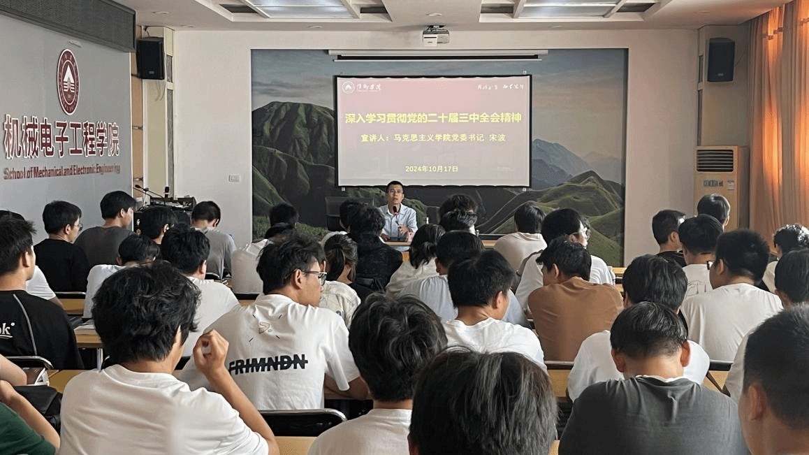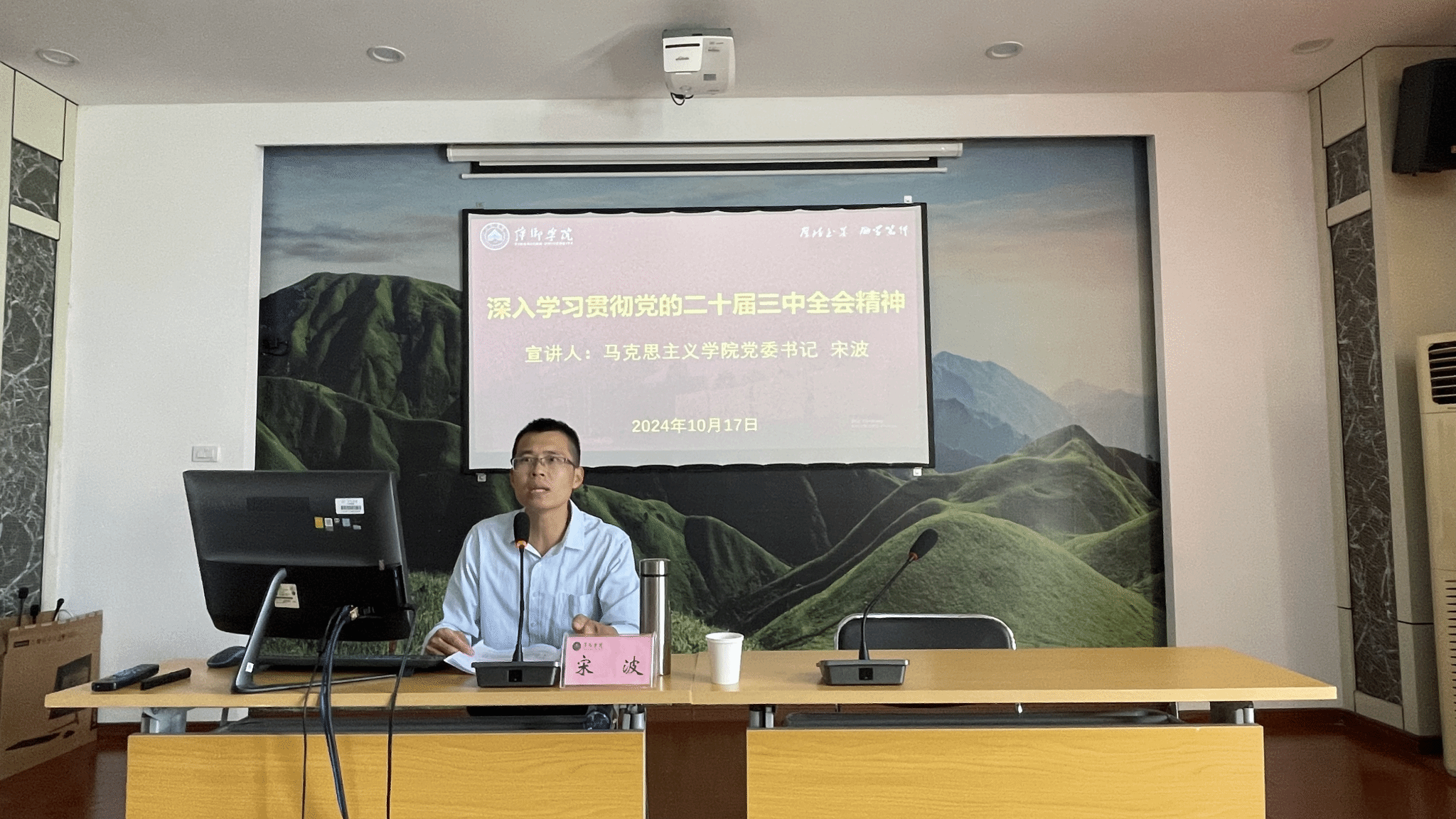 10月17日下午,马克思主义学院党委书记宋波深入565net必赢客户端宣讲党的二十届三中全会精神,宣讲会由565net必赢客户端党委副书记童乐主持,学院师生党员、辅导员、学生党员代表约60人聆听宣讲。