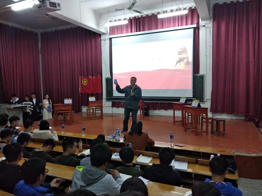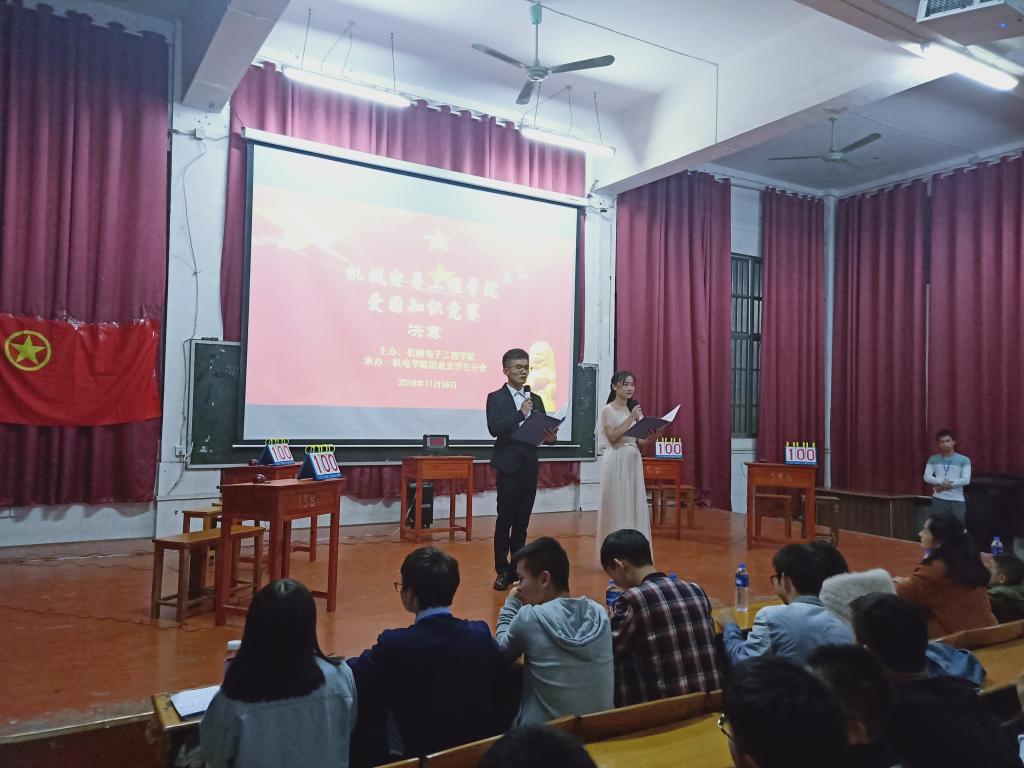 2018年11月26日晚7点整,机电学院于跬步楼1115教室举办爱国知识竞赛决赛,出席本次活动的嘉宾有机电学院18级辅导员、18级各班班主任及团总支学生分会执委团。18级全体机电学生观看比赛。