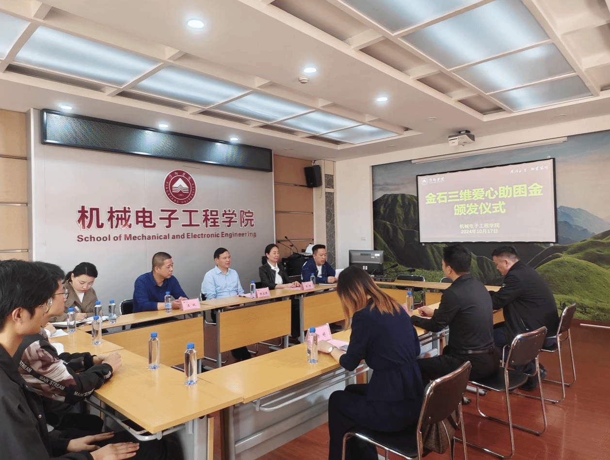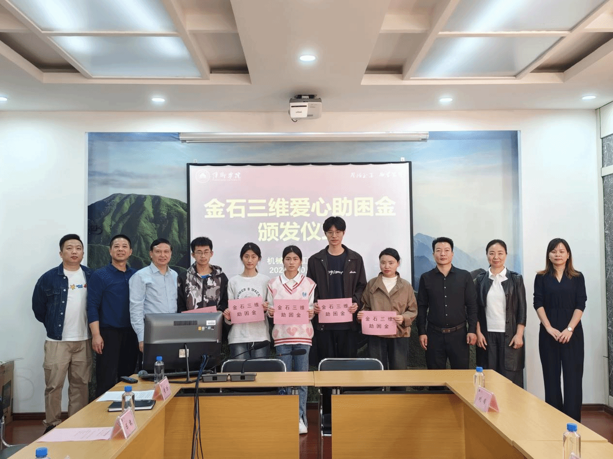 江西金石三维智能制造科技有限公司从2023年开始在565net必赢客户端565net必赢客户端设立金石三维爱心助困金,帮助困难师生。会上童乐副书记解读了565net必赢客户端金石励学助困金实施办法,介绍了2023年受助的5名学生的情况,公布了2024年受助师生名单,王小博总经理和陈永国副校长为受助师生发放助困金,23机电2班受助学生代表张晶发表感言,她表示非常感谢江西金石三维智能制造科技有限公司和学校在成长过程中给予她的物质帮助与心理支持,激励了她砥砺前行,她将努力学习,用优异的成绩回馈社会。随后,王小博总经理介绍了公司的基本情况与企业文化,他表示,财富取自社会也将用于社会,未来将加大力度回馈社会,也欢迎学校的毕业生选择江西金石三维智能制造科技有限公司。