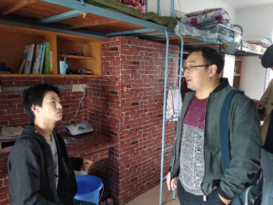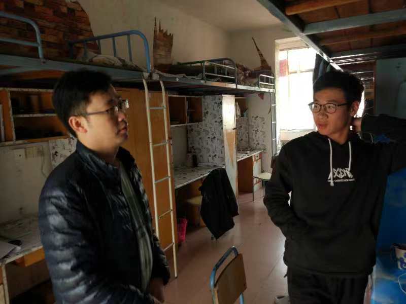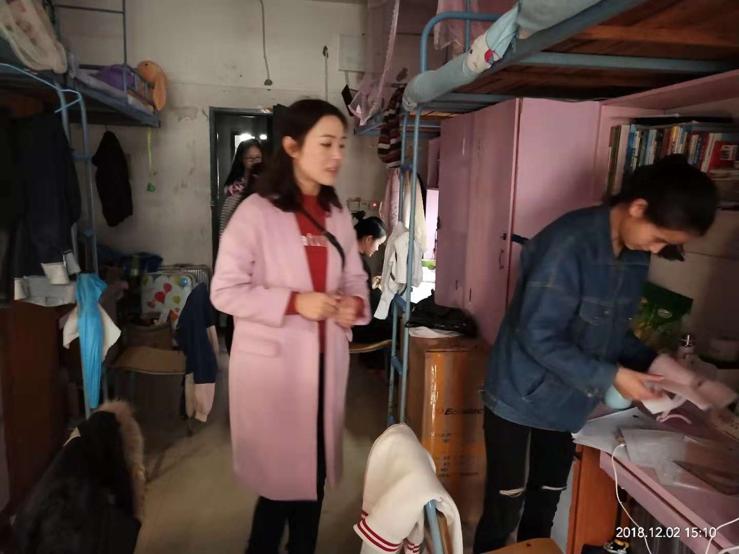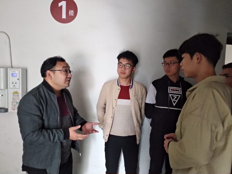 近日学院有部分学生出现不同程度的腹泻、呕吐等现象。为了更好的了解同学们的生活情况,2018年12月1日至2日周末期间,机电学院党总支副书记王立平、辅导员张陆、杨芳、罗钦艳老师先后来到机电学院各楼栋寝室检查落实消毒情况,看望腹泻生病的学生,表达关怀和问候。