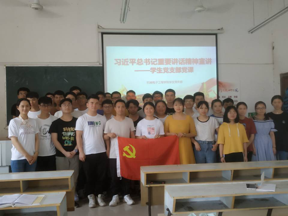 为了进一步学习十九大精神,培养合格学生党员,2019年5月24日,机电学院学生党支部开展了党课活动,学院学生党员及入党积极分子参加活动。党课由杨芳老师主讲。