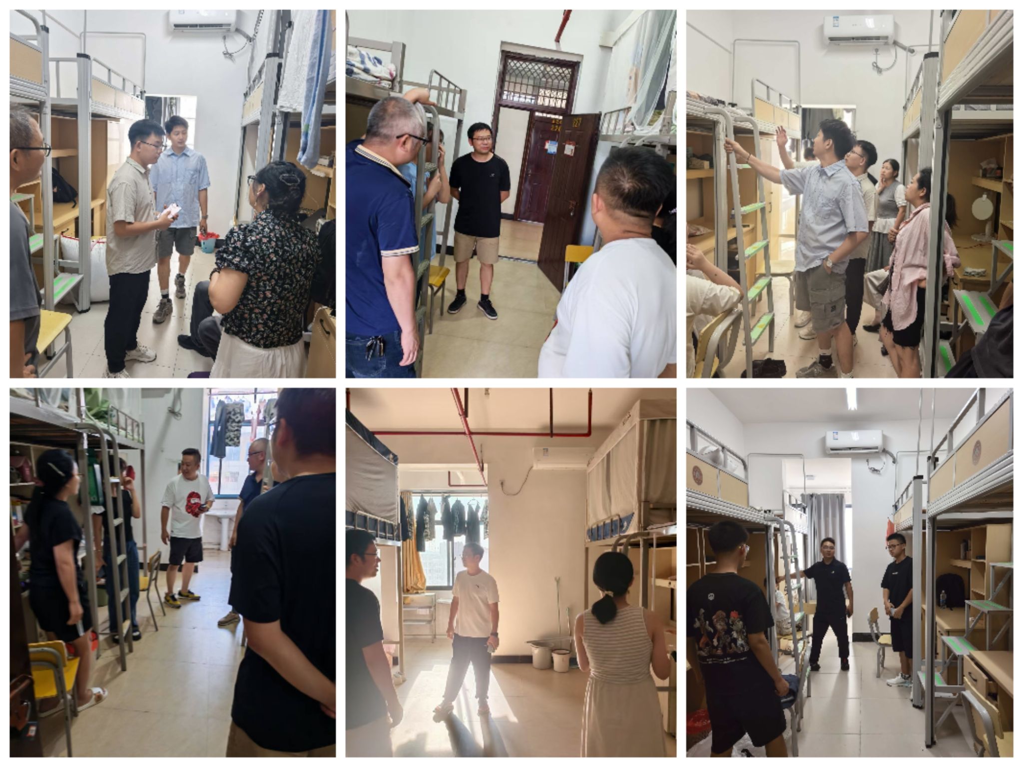 报到场外,学院班子和辅导员班主任老师分别带队走进学生宿舍,查看新生宿舍安置情况,鼓励大家尽快适应大学生活,好好学习,再创佳绩。
