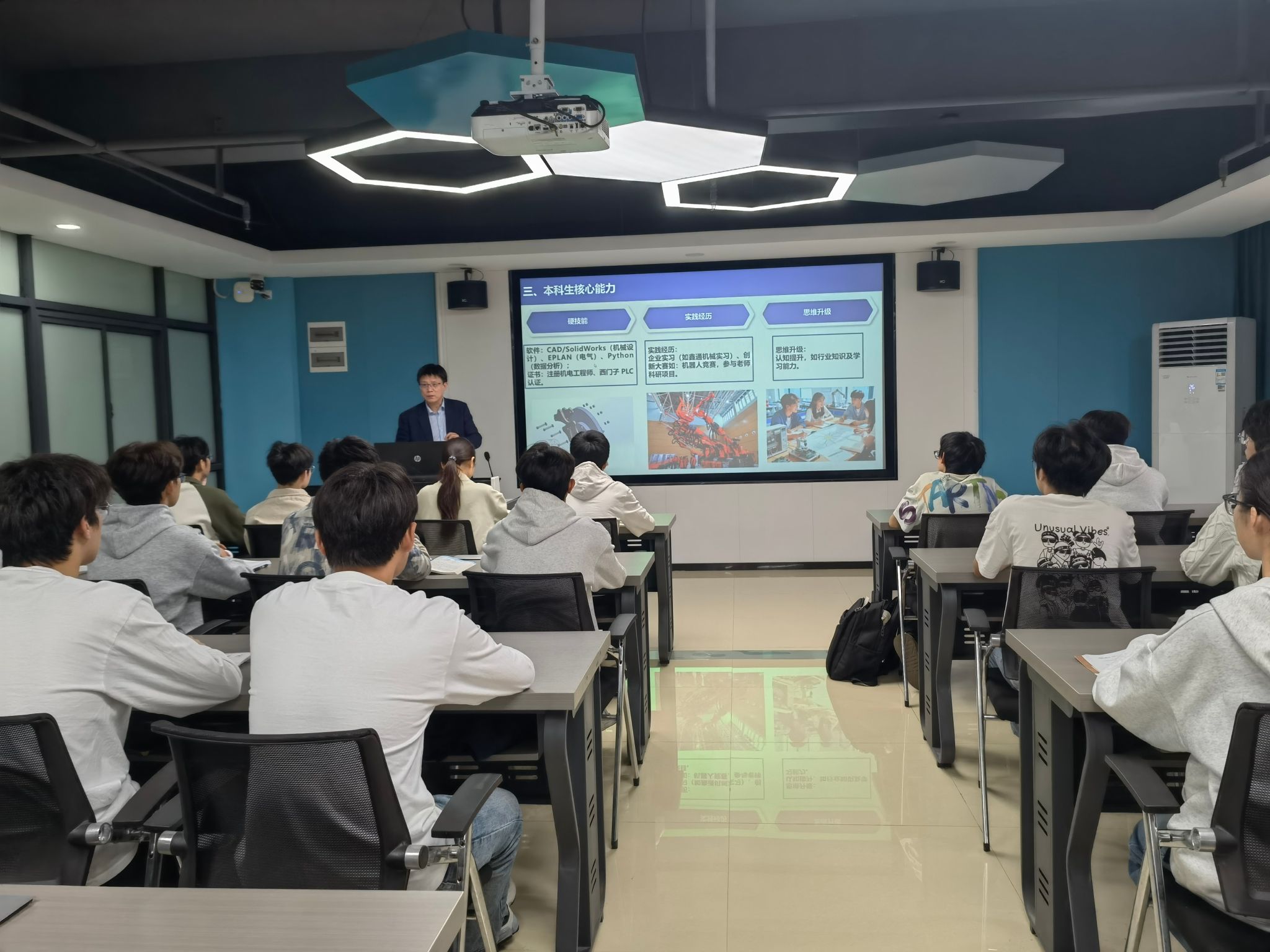 刘林芽校长基于“为党育人、为国育才”的初心和使命,紧扣当下国家对科技创新人才培养的战略需求,通过学习领悟习近平总书记在科学家座谈会上的重要讲话、在中央人才会议上的重要讲话,剖析科技创新在全面建成社会主义现代化强国征程中的重要地位,引导学生铭记校训,增强立志科创担重任的决心。“未来属于青年,希望寄予青年。”他结合自身经验及机械电子工程专业四大技术前沿方向,强调了本科生核心能力的培养,鼓励同学们努力学习专业理论知识,深耕学科交叉赋能科技创新与新质生产力建设。刘校长的讲述激发了学生强烈的爱国热情和历史使命感,引起学生们的共鸣,大家积极互动,探讨学习、实践、科技创新等话题,并表示要求真知、长才干,奋力书写为中国式现代化挺膺担当的青春篇章。