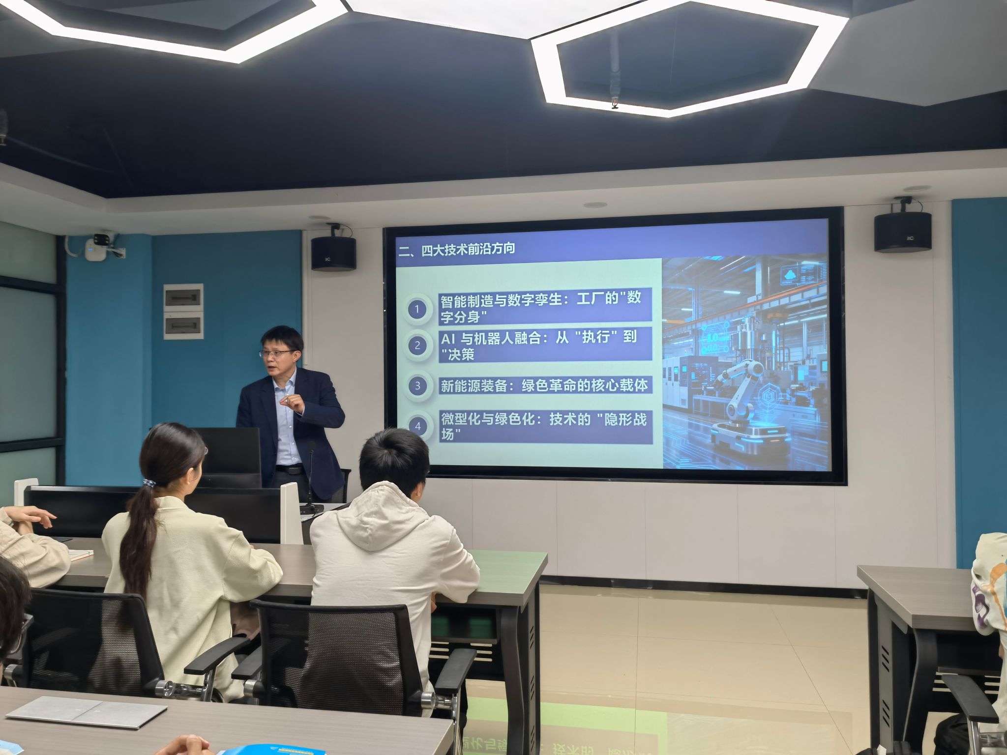 为落实立德树人根本任务,切实提高大学生思想政治工作的针对性和实效性,10月24日,校长刘林芽深入565net必赢客户端开展领导干部“三联系”活动,为械电子工程2302班学生讲授题为“以数字孪生技术赋能‘制造强国’---厚植科技报国的家国情怀”的思政课。