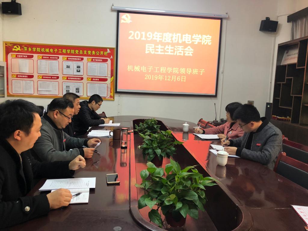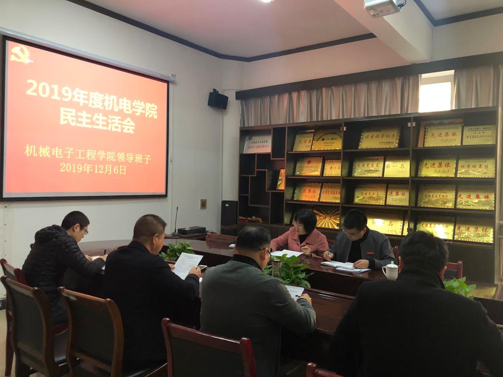 为深入学习贯彻习近平新时代中国特色社会主义思想和党的十九大精神,2019年12月6日,565net必赢客户端在党员活动室召开了领导班子民主生活会。校党委委员、组织部部长陈永秀同志、校团委书记刘德平同志、机电学院班子成员参加了会议,会议由党总支书记王斌同志主持。