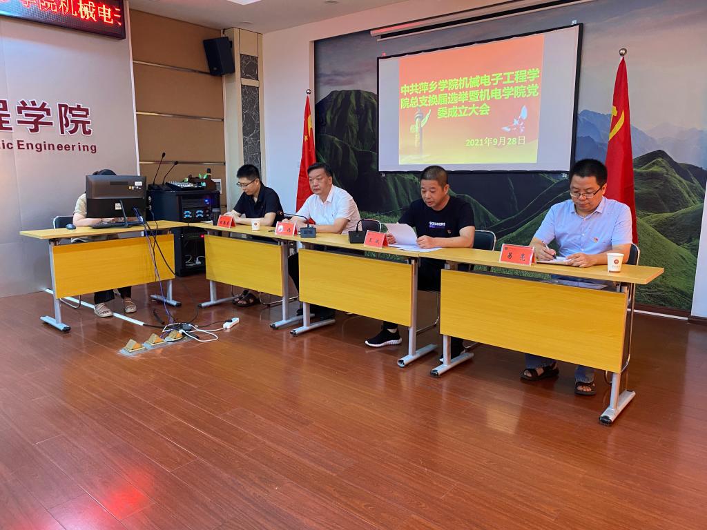 经学校党委批准,机械电子工程学院党总支换届选举暨机电学院党委成立大会于9月28日下午在2200会议室顺利召开。校党委委员、副校长郭伟同志、组织部副部长易亮同志出席大会并监督指导整个大会选举过程。会议由机电学院党总支书记王斌同志主持,学院全体正式党员参加了会议。