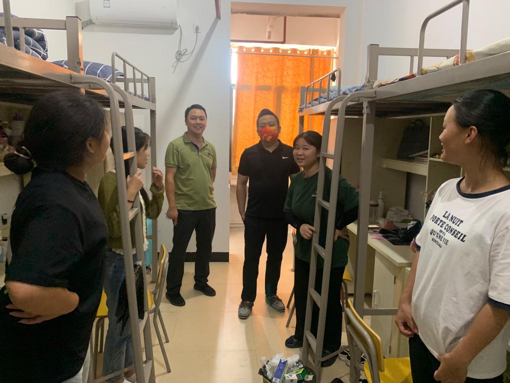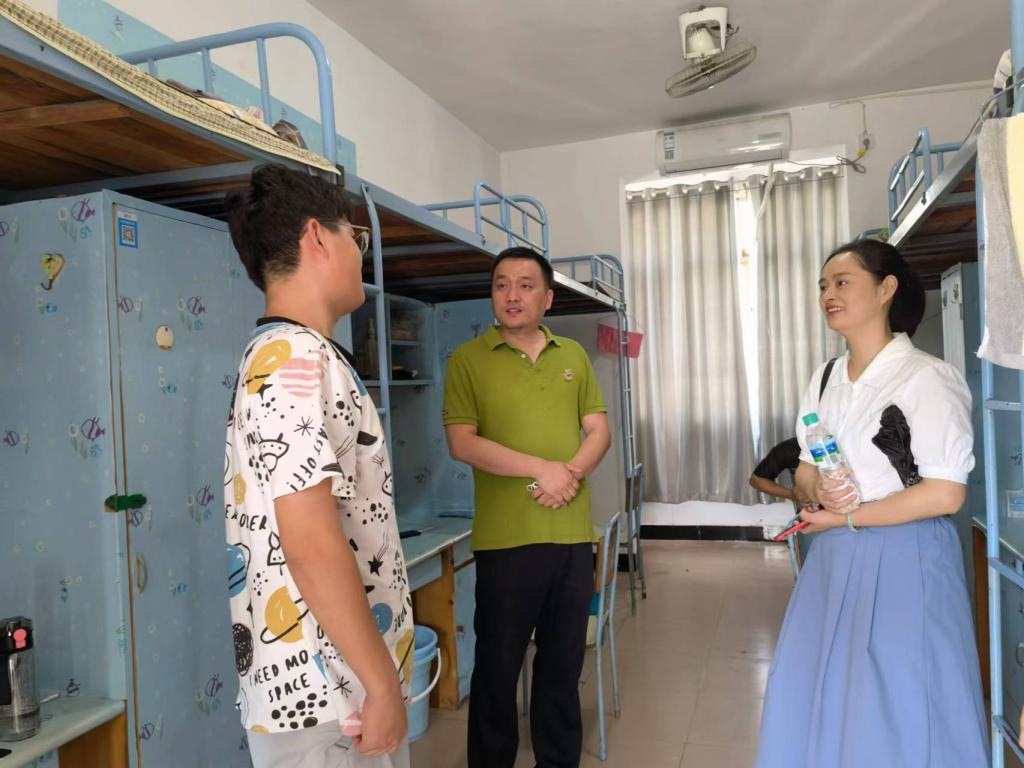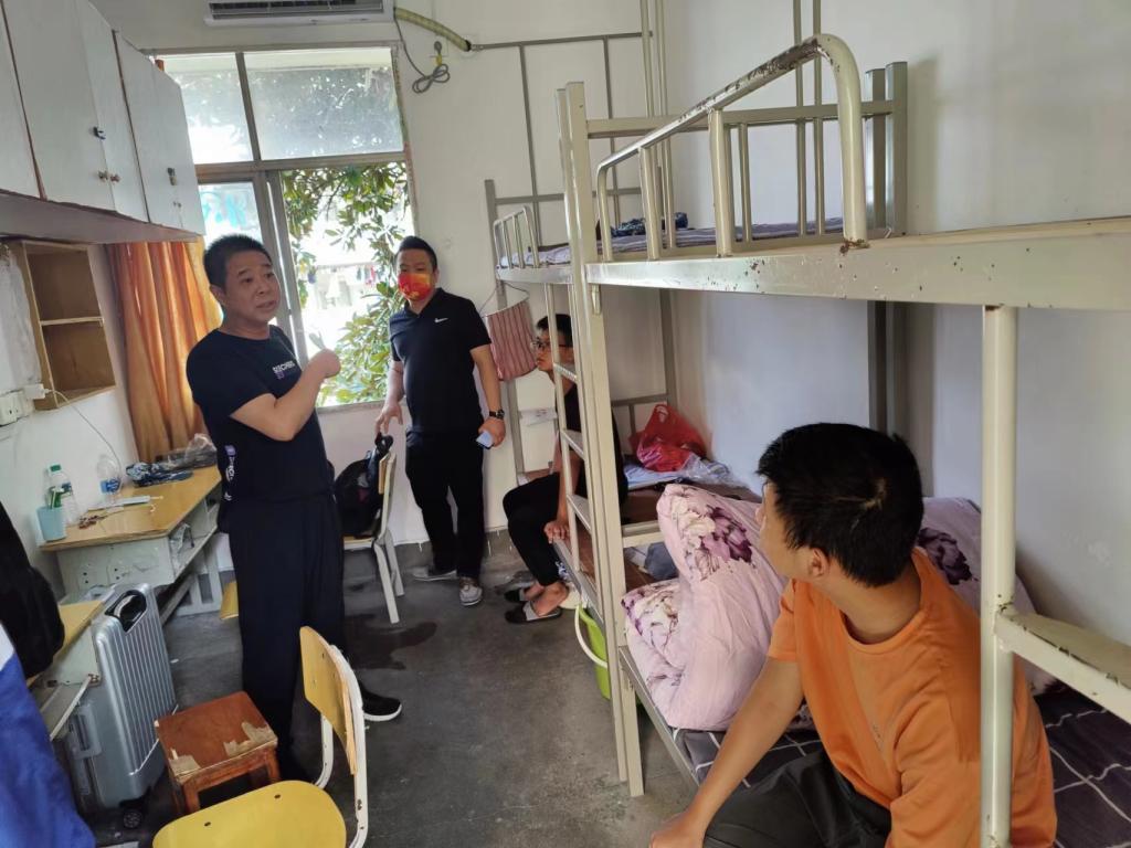 2022年9月12日上午,565net必赢客户端党委书记王斌、院长李涛涛、副书记童乐、副院长刘耀和新生辅导员先后深入3栋、7栋、18栋的2022级新生宿舍,对新生表示慰问和关心。