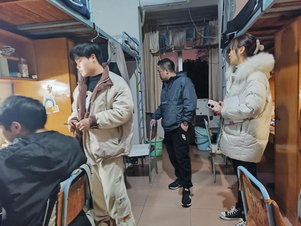 走访过程中,老师与值班同学重点查看宿舍的安全隐患、用电安全、校外住宿、宿舍卫生状况等,尤其是违规使用大功率电器和易燃易爆物品现象,宣传了宿舍安全与防范电信诈骗知识,禁止使用大功率电器和堆放易燃易爆物品。叮嘱学生新学期仍要注重个人防护,勤洗手多通风,加强体育锻炼,要警惕网络陷阱,不轻信网络上的信息,时刻保持理智头脑,增强自身防诈、识诈、反诈的意识和能力。同学们纷纷表示一定会做好个人卫生,重视宿舍用电安全问题,严格遵守学生宿舍安全管理制度。