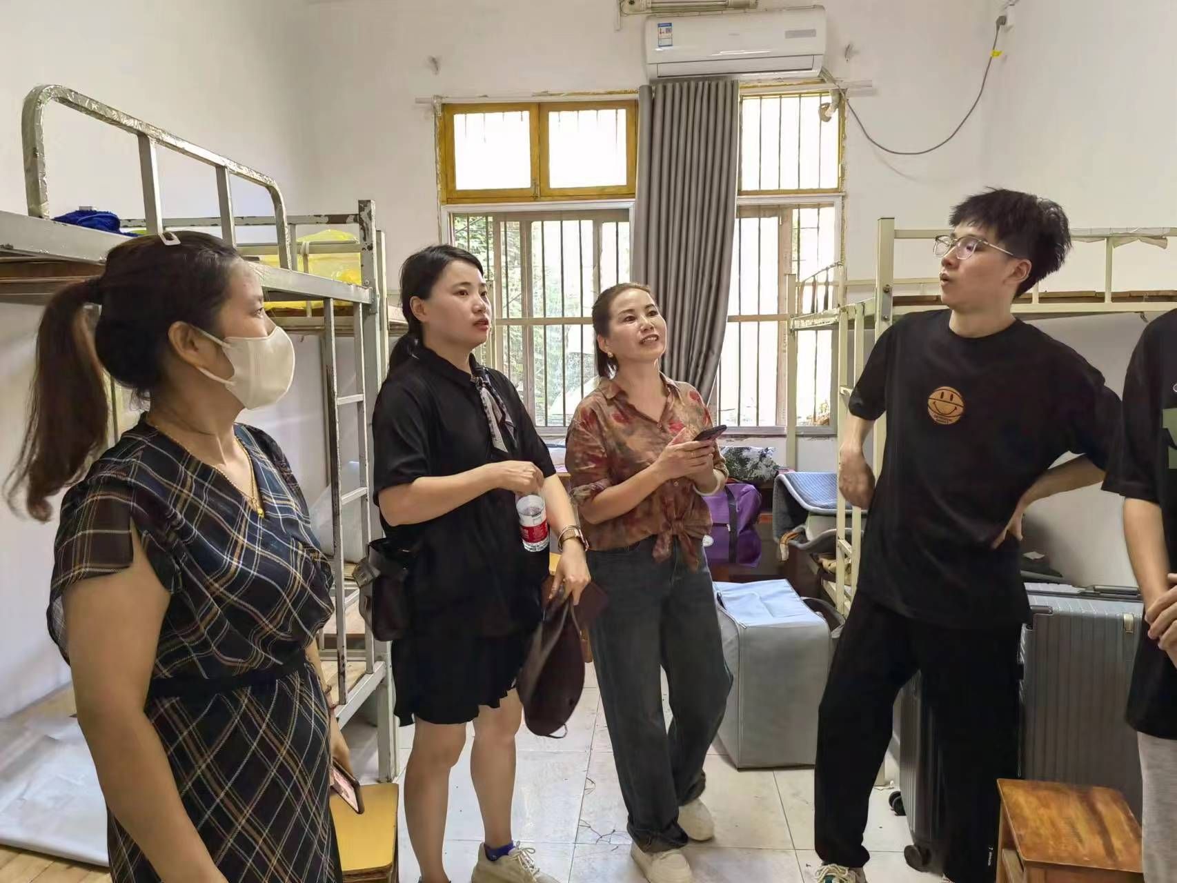 在走访过程中,辅导员们希望新生同学能珍惜五湖四海汇聚一堂的缘分,和睦相处,共同营造良好的生活、学习环境,在今后的大学生活中团结互助,共同进步。同时强调了要提高安全意识,特别是开学期间的财产安全、用电安全。
