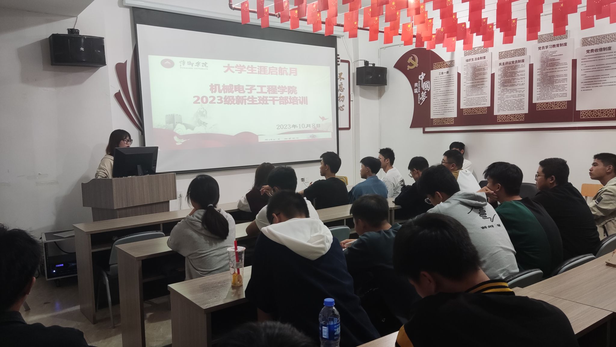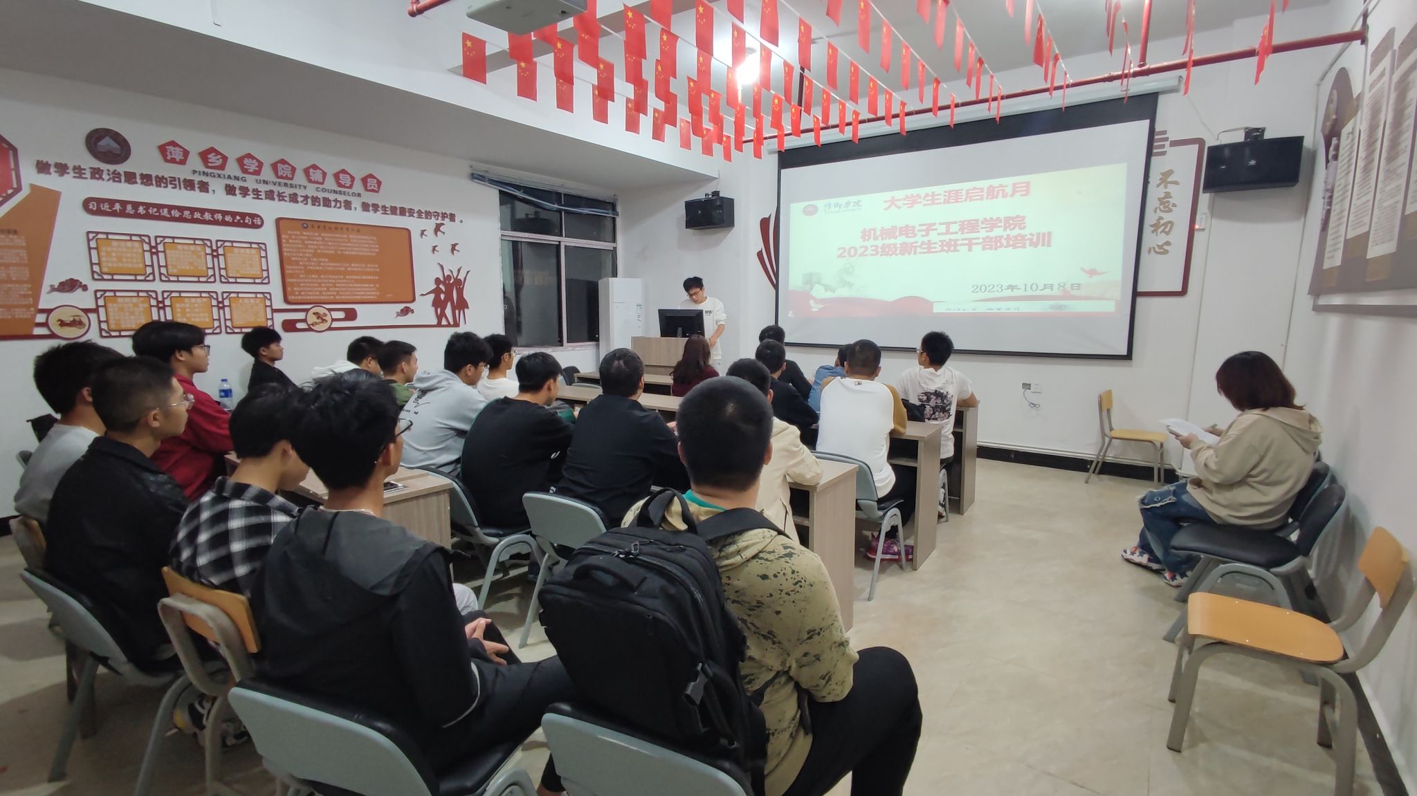 为进一步加强2023级新生班级干部建设,提高综合素质和工作能力,打造一支热情为同学们服务的学生干部群体,10月8日,565net必赢客户端于“红管家”一站式学生社区开展“大学生涯启航月”2023级新生班干部培训活动。辅导员李哲老师出席。优秀班干代表罗鑫坤、赖盈妃以及大一新生班干代表参加此次活动。