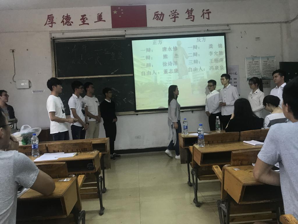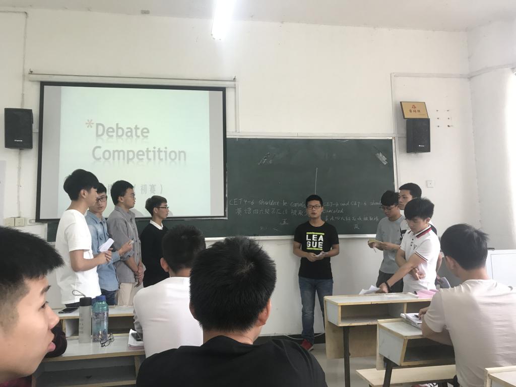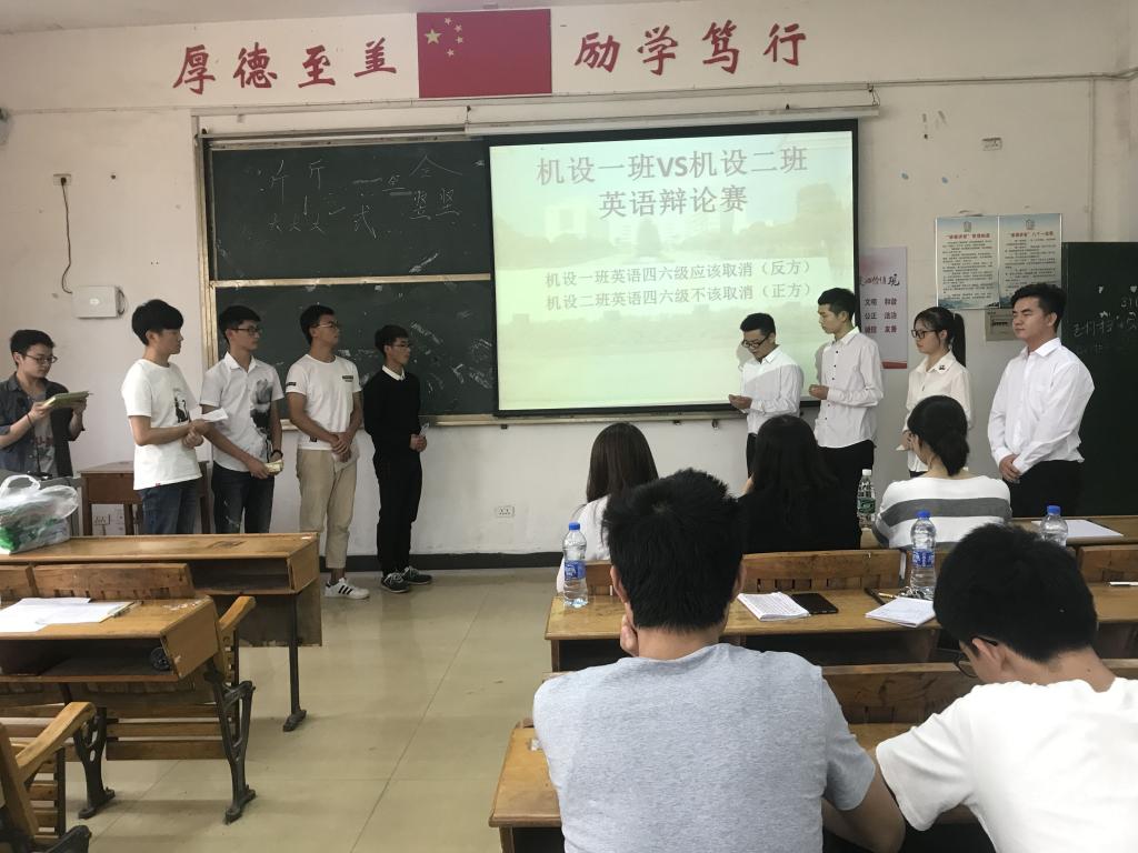为丰富校园文化生活,培养学生的综合素质,促进学生健康成长,2018年6月6日,16机设1班和16机设2班在英华楼3106进行了一场辩题为CET-4 and CET-6 should be or not canceled的英语辩论赛。
