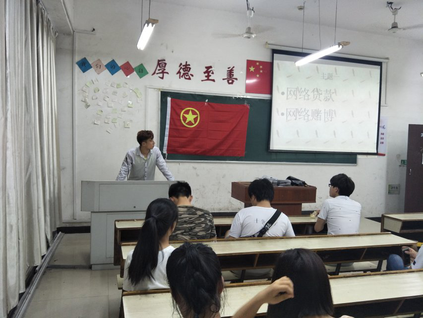 此次班会由班长任志博主持。首先任志博说了一下关于不要随便在软件或网址里面输入自己的身份信息,以免被贷款自己也不知道。随后又阐述了网络贷款的一系列危害,希望同学们不要为了一时起意贷了几千块钱,到时背负着几十万的债。作为新时代大学生,要学会勤俭节约,网贷就是一个无底洞,要明辨是非。之后进入下一个话题:拒绝网络赌博,作为消费者,不要贪一时之乐,把父母的血汗钱挥霍出去,任志博提醒同学们切勿赌博,远离会赌博的朋友。会议结束之前,任志博还提到,临近考试,同学们要抓紧时间复习,要诚信考试,它是一个人素质的体现。