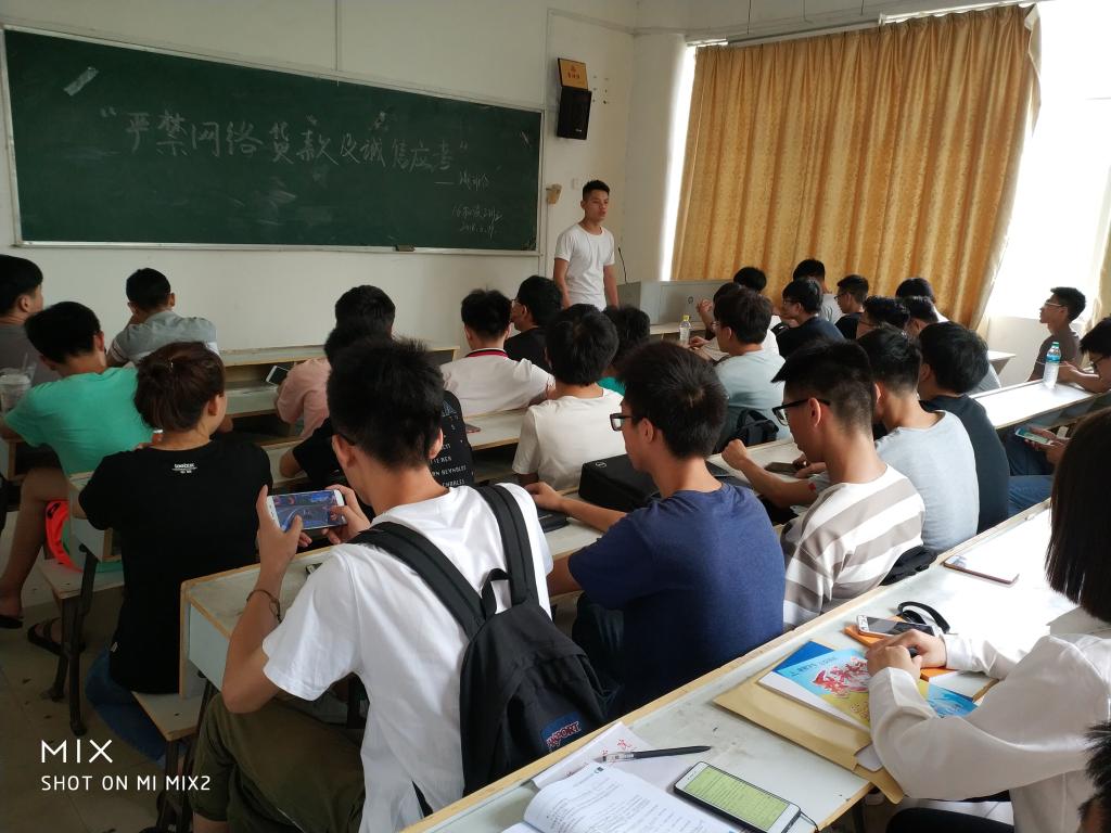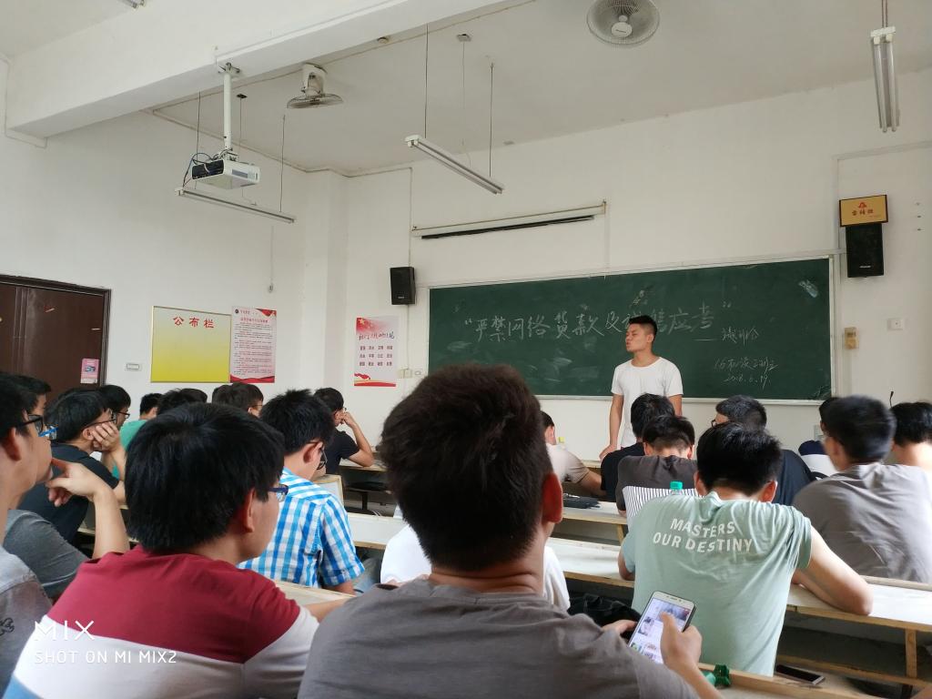 为进一步加强考风考纪,营造良好的学习氛围和公平考试环境,增强学生诚信意识,避免考试违纪现象发生,2018年6月19日,16机设2班在英华楼召开“拒绝网贷、诚信考试”主题班会。班会由班长高伟主持。