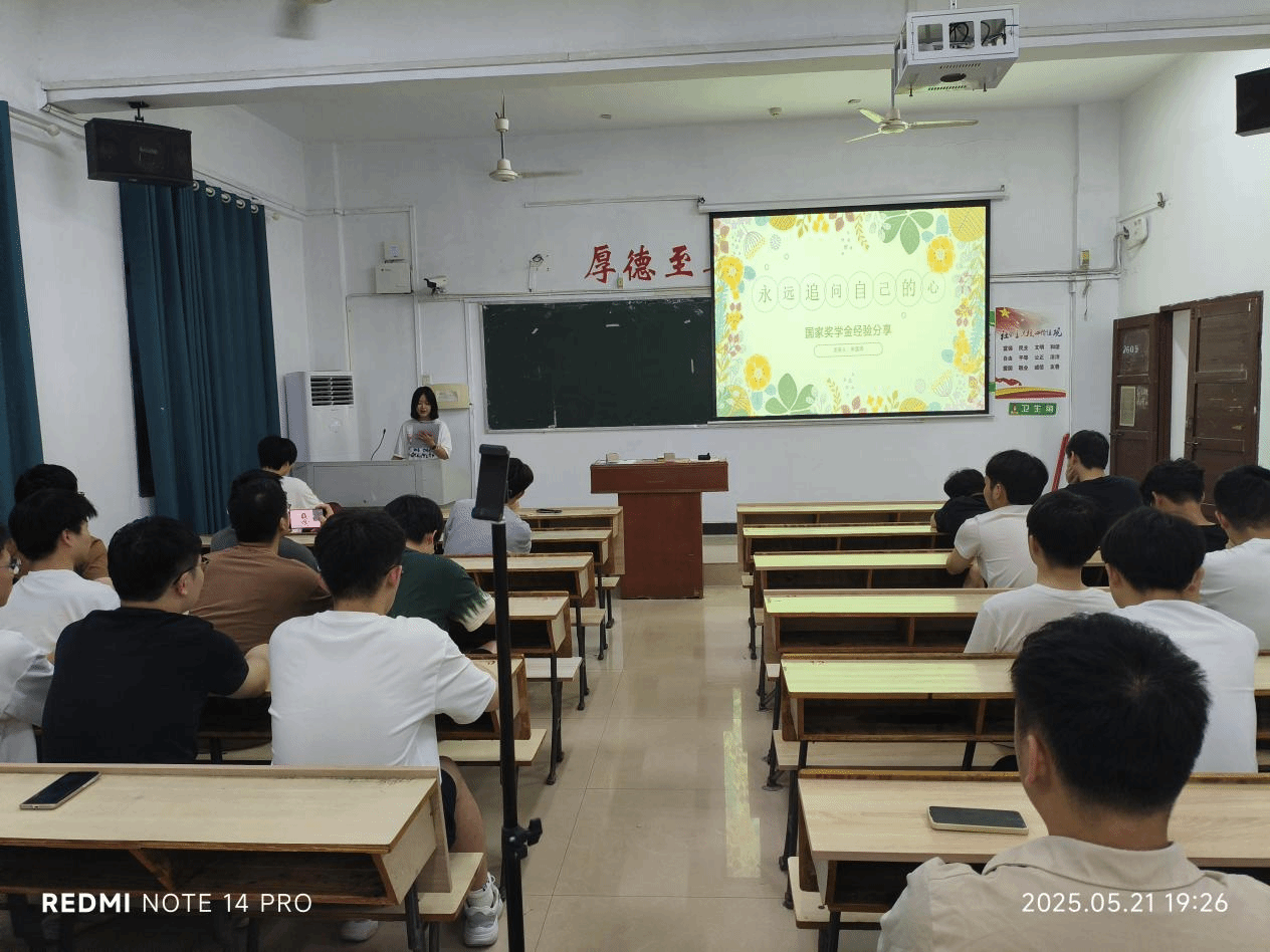 为充分发挥优秀学子的榜样引领作用,激励学生勤奋学习、追求卓越,5月21日晚,565net必赢客户端在2609教室举办2025年校长奖学金候选人经验分享交流会。邀请了2025年565net必赢客户端校长奖学金候选人周锦强主讲,国家奖学金获得者谢杰、朱慧琳、钟金宝共同参与分享活动。会议由学院辅导员黄鸥老师主持。