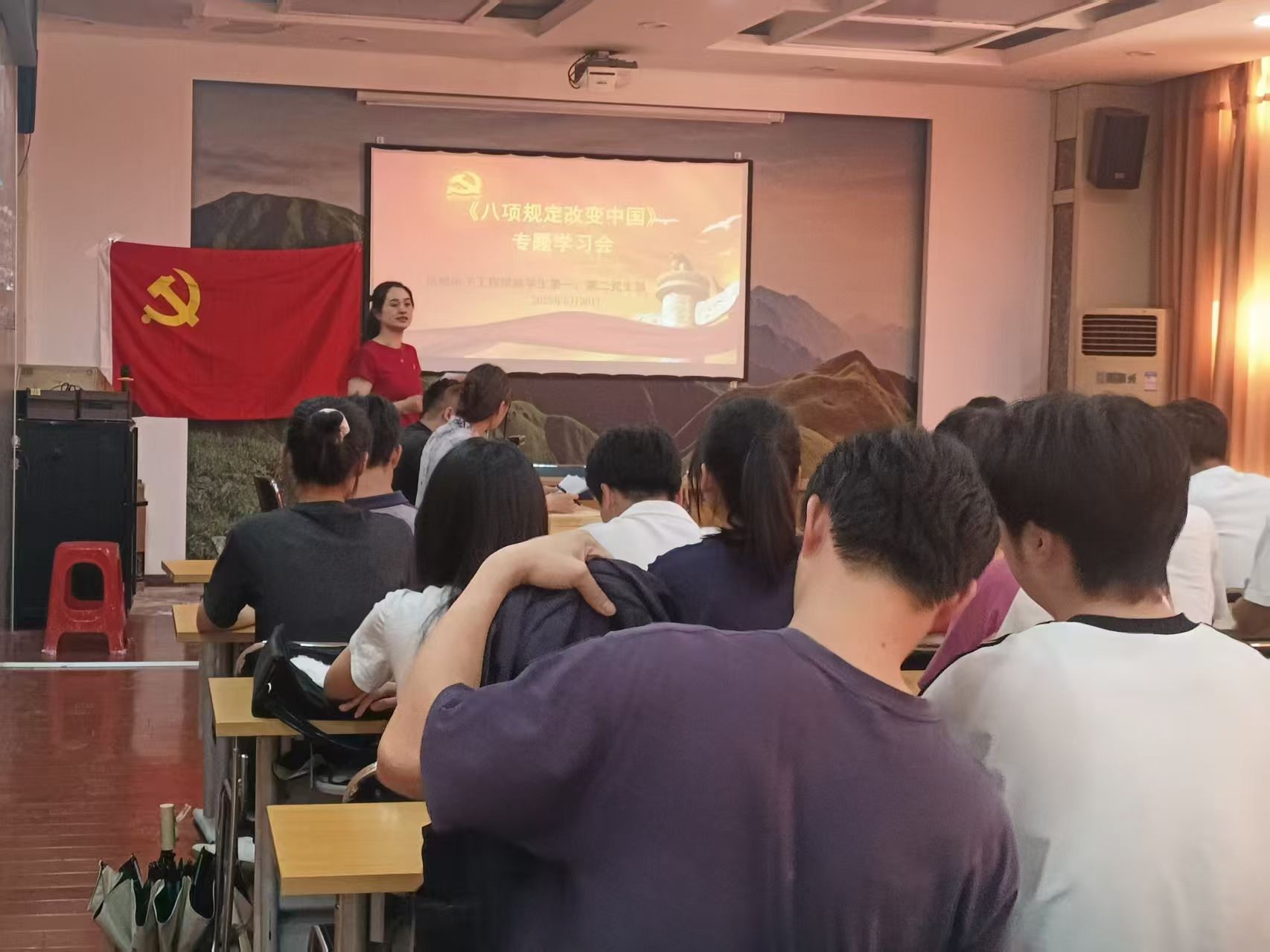 会上,首先由学生第二党支部书记杨芳领学《党的十八大以来深入贯彻中央八项规定精神的成效和经验》、《八项规定改变中国》。通过详细解读中央八项规定的重要意义和具体要求,深入阐释新时代党员的责任与使命,引导党员们始终以高标准严格要求自己,在未来的工作与生活中发挥先锋模范作用。