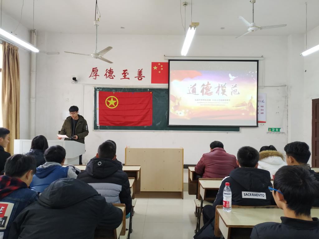 为继承和弘扬中华民族优秀文化,提高学生的道德修养,进一步弘扬社会主义核心价值观,机电学院于2018年12月13日中午在鼎新楼2313教室开展了以“积善筑德,从身边做起”为主题的道德讲堂活动。机电学院党总支副书记王立平、学工科长童乐、辅导员出席了此次会议。2018级学生参加了活动。