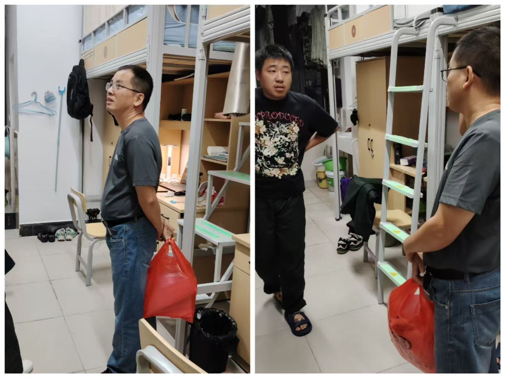 走访过程中,肖老师细致察看住宿环境,亲切询问同学们的住宿体验、饮食适应情况以及日常生活需求,并耐心解答他们在课程安排、专业规划、社团参与等方面的疑问。面对部分新生初入大学时的迷茫与焦虑,他结合自身经历,娓娓道来大学生活的适应方法与学习经验,鼓励大家尽快调整心态、树立目标、积极融入,在机电学院这个大家庭中找到属于自己的位置。交流中,老师特别强调了宿舍安全事项,提醒新生注意用电规范、防火防盗,保持室内整洁,共同维护安全、舒适、和谐的生活环境。同时也认真倾听和记录了同学们提出的意见与建议,并承诺将积极协调、尽快回应、全力解决。