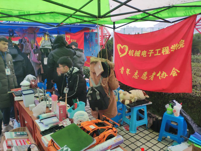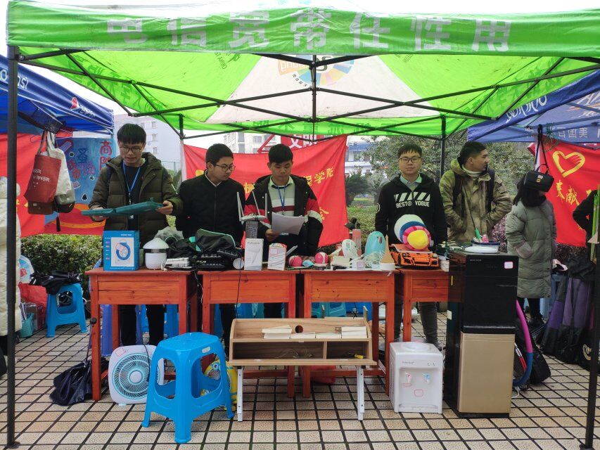 为了帮助在校大学生学会勤俭节约,提高自主创业能力,加强同学间的团结互助能力。2018年12月11日星期二,由机电青协主办、十一个兄弟学院青协协办的爱心跳蚤市场活动在中心小广场成功举办。