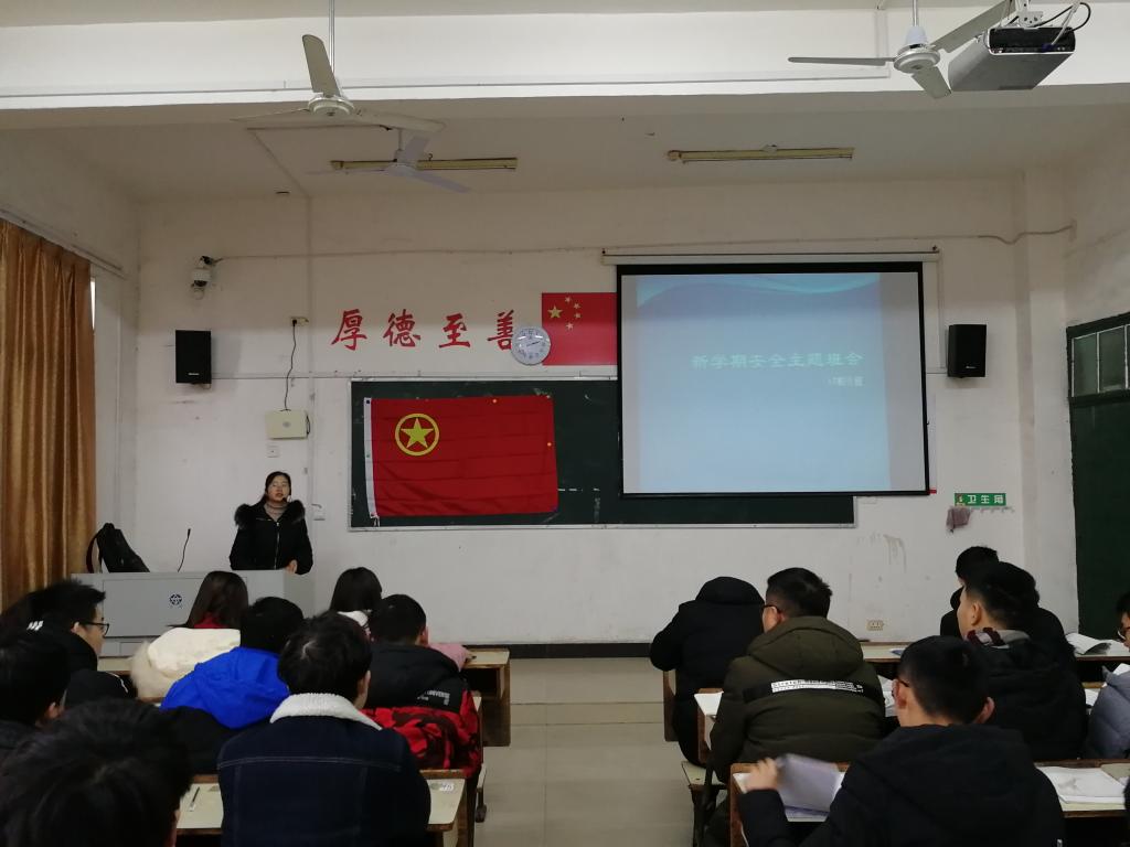 2019年02月26日,机电学院17机械电子工程班在英华楼3604教室开展了“新学期安全教育”主题班会。班会由机电班班主任刘江英主持,持续了20分钟。主题班会的主要目的是给同学们提出新学期新要求。