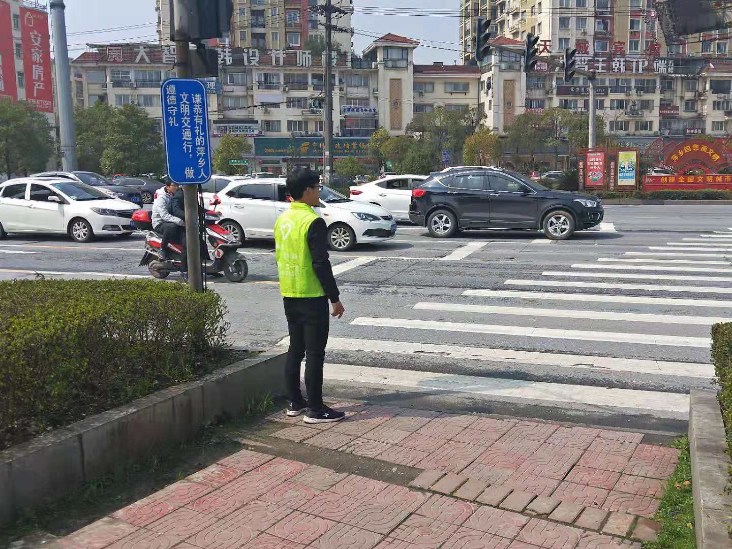 2019年3月13日中午,为了配合学习三月份“雷锋月活动”的开展,展现雷锋精神,进行自愿精神的传递,18电信二班部分同学作为志愿者在学校旁边进行了“交通督导,文明出行”活动。