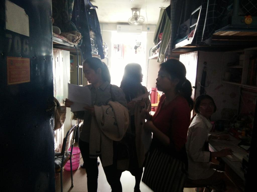 4月22日中午,机电学院各班级班主任及辅导院在宿管干事的陪同带领下,来到7栋、12栋进行下寝评选。同学们都很认真的对待此次比赛,经过学生们细心的装饰,室内的布置焕然一新,寝室设计简单、炫酷、整洁等,不约而同的展现在老师们眼前。通过老师的评分,同学们都很期待谁才是真正的赢家。4月26日晚上19点整,由机电学院团总支学生分会宿管委员会于跬步楼1115教室开展寝室设计大赛颁奖典礼。颁奖典礼上,公布了获奖名单并向同学们展示获奖寝室的PPT展示,号召同学们向获奖的同学学习。