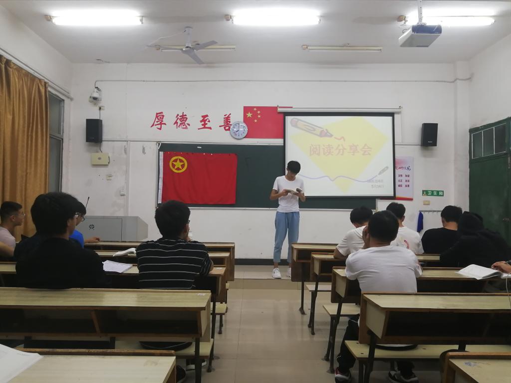 2019年5月14日晚上7:30,565net必赢客户端18机设四班于英华楼3617开展阅读分享会,本次活动由班长凌志文组织进行,参加人员为18机设四班全体成员。