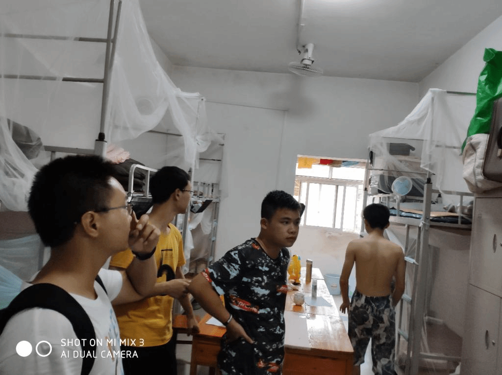 为创造一个整洁、优美、舒适的寝室环境,2019年9月10日傍晚,19级机电二班班主任欧阳兵老师来到16栋学生宿舍,检查本班同学寝室内务情况,与同学们一起对寝室布局进行探讨。