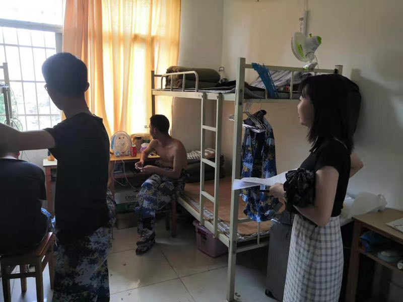 进入宿舍后,李芳老师们不仅查看了宿舍是否存在安全隐患,还了解了同学们的军训与校园适应情况。老师们亲切地与同学们交谈,关心了解同学们最近的学习生活情况,希望新生们能珍惜这初入大学军训的第一课,在发扬不怕苦不怕累的精神,提高身体素质的同时也要照顾好自己的身体。