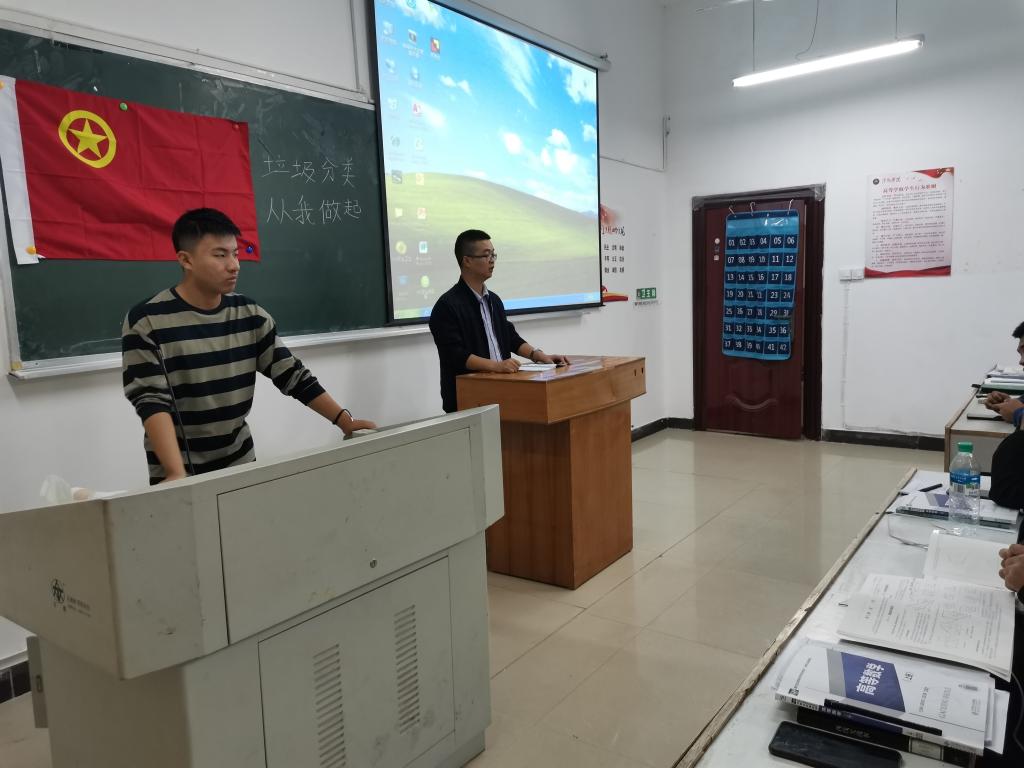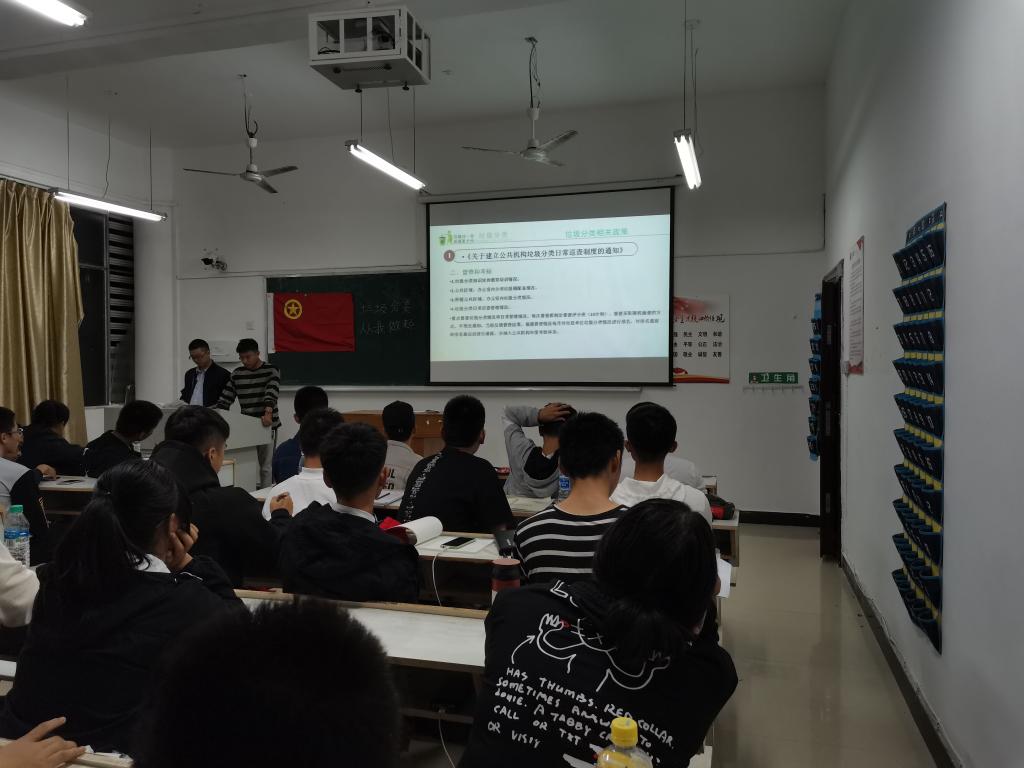 为积极响应学校文明创建主题活动,提高同学们的环保意识,2019年10月23日晚19机设二班于鼎新楼2216开展以“垃圾分类,从我做起”为主题的教育活动。