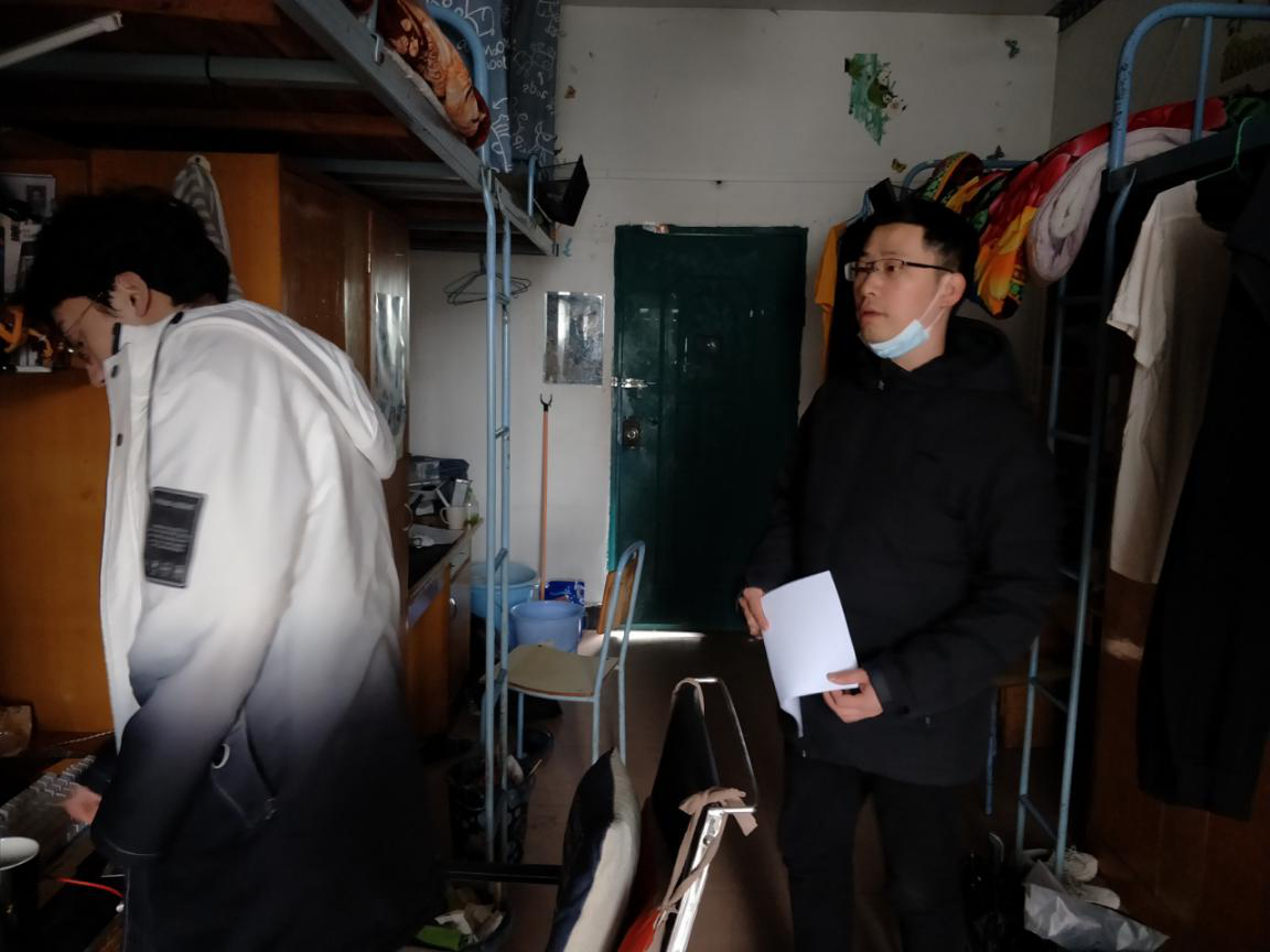 1月6日晚,由辅导员黄鸥、杨芳带队,学院宿管会学生干部对女生宿舍18栋和男生宿舍3栋进行安全隐患排查。检查中,发现个别学生宿舍卫生状况不佳、存放有大功率违章电器,对60余间宿舍的报修需求进行统计,并统一报送到学校学工科宿舍管理中心。
