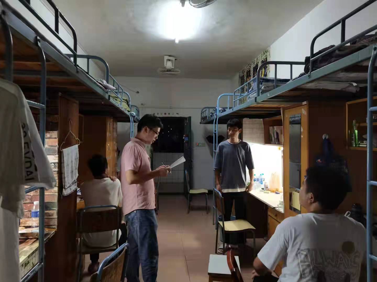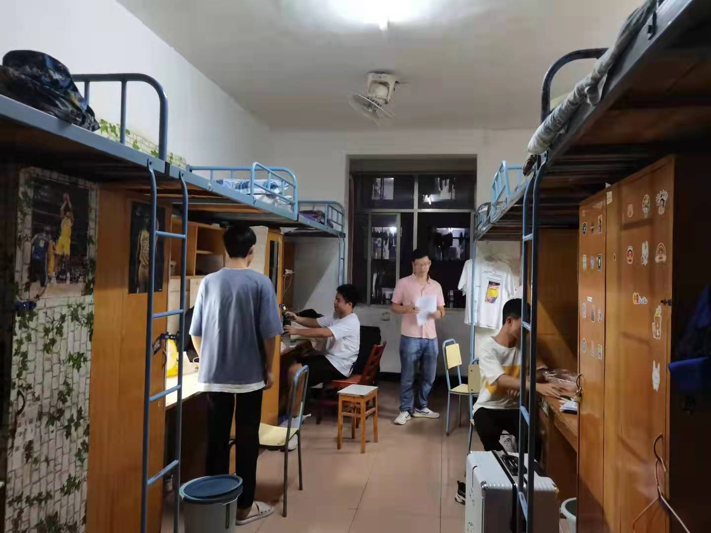 在寝室中,张老师与学生亲切地聊家常,从金秋九月的凉爽天气聊到他们即将面对的新生军训,聊到国庆节假期安排,他事无巨细的回答了学生们的各类疑问,重点强调了宿舍成员之间和睦相处以及宿舍文化建设的问题。在轻松愉快的聊天氛围里拉近了师生之间的感情。张老师在走访的过程中说到:“大家将开启一段崭新的生活,希望同学们保持自律、自信的生活态度,做好自己的未来规划。”
